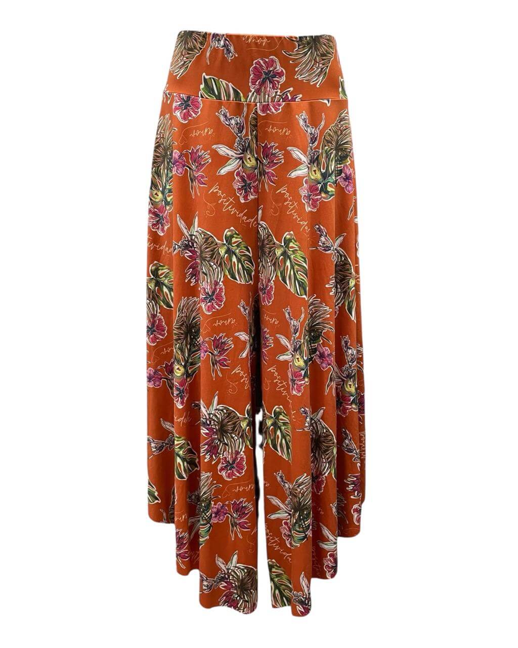 Calça Pantacourt com aberturas laterais e cos elástico.