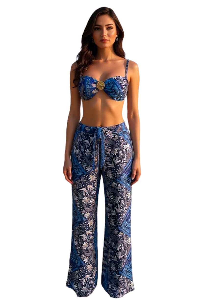 Calça pantalona com amarração na cintura. Modelagem solta e reta com caimento perfeito.