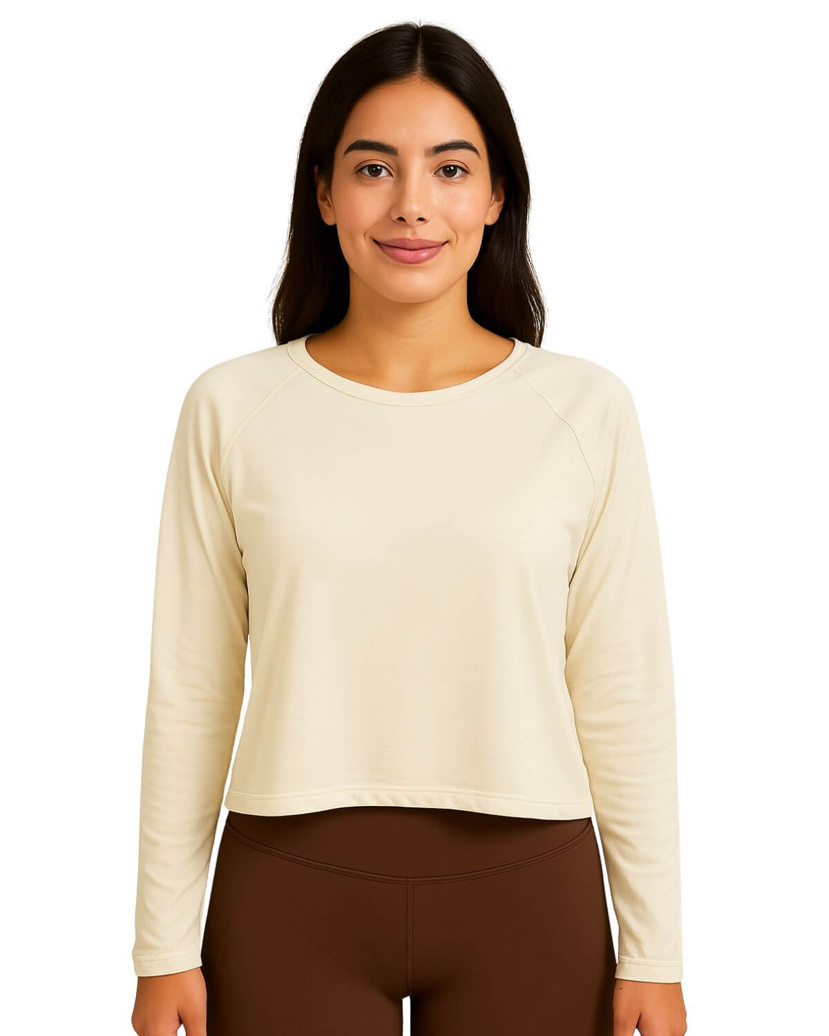Blusa Modelo cropped com manga longa, feito em dry fit pisco