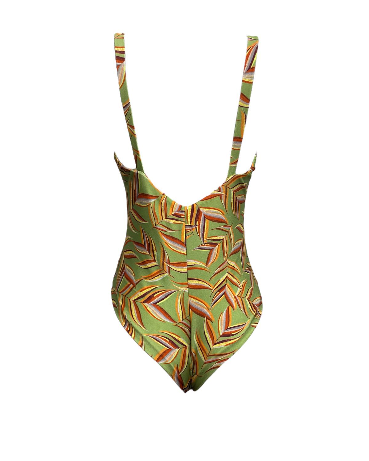Maiô estilo Body com decote frontal reto e costas arredonda com bumbum cavado. Possui bojo removível e alças largas.