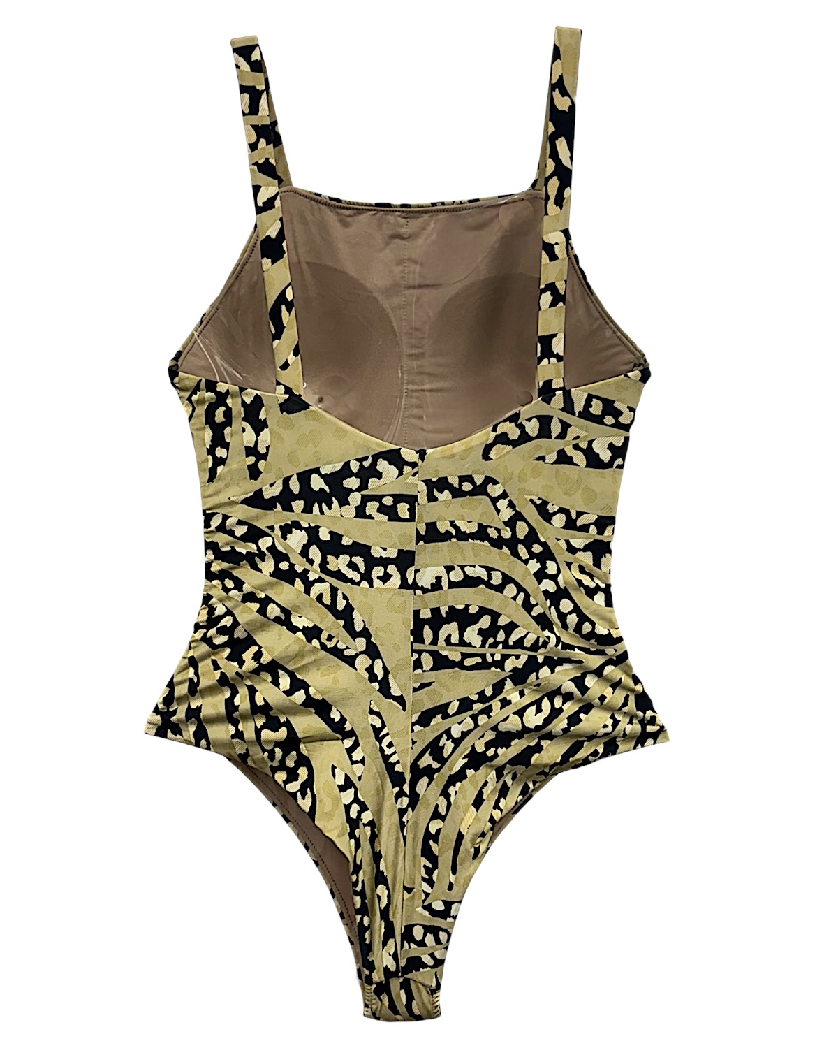 Maiô estilo Body com decote frontal reto e costas arredonda com bumbum cavado. Possui bojo removível e alças largas.