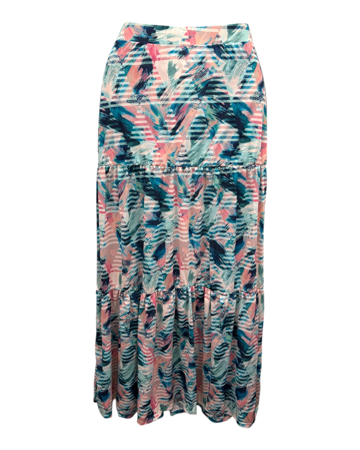 Saia longa três marias estampada com cós elástico e forrada no quadril.