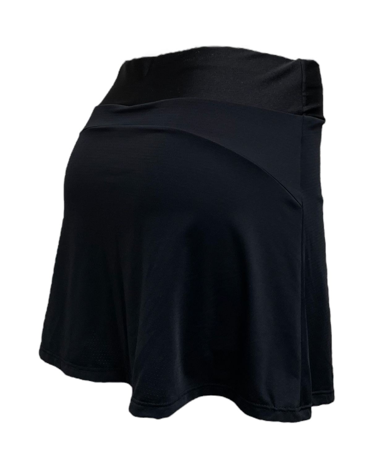 Saia shorts fitness Confeccionada em tecido leve de secagem rápida, modelagem com leve evasê que modela o corpo. Extremamente confortável e perfeita para atividades físicas. Possui bermuda interna com compressão moderada e bolsinho para guardar pequenos objetos. Confeccionada em poliamida e elastano, secagem rápida e proteção UV 50+* Composição: Tecido da saia: 92% poliamida e 8% Elastano/Tecido do shorts: 87% Poliamida e 13% Elastano
