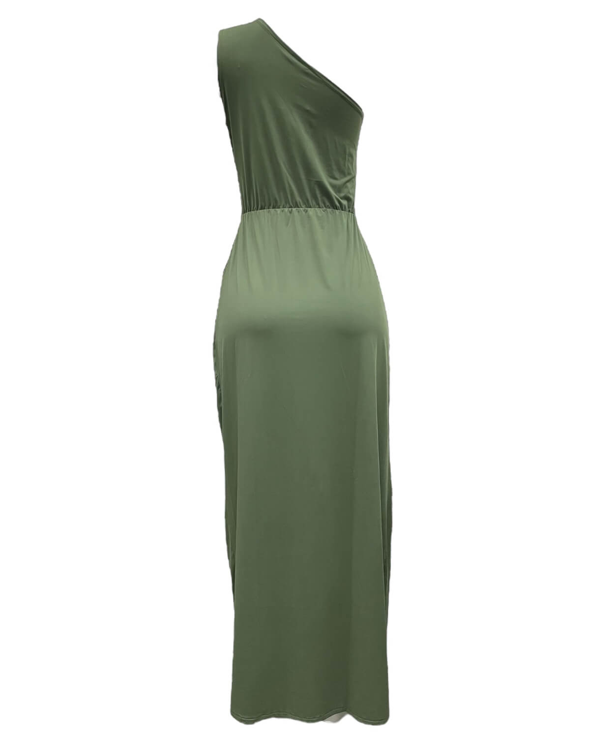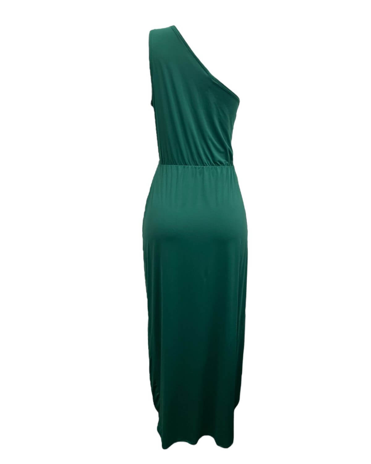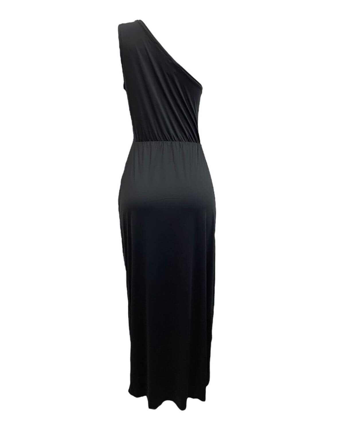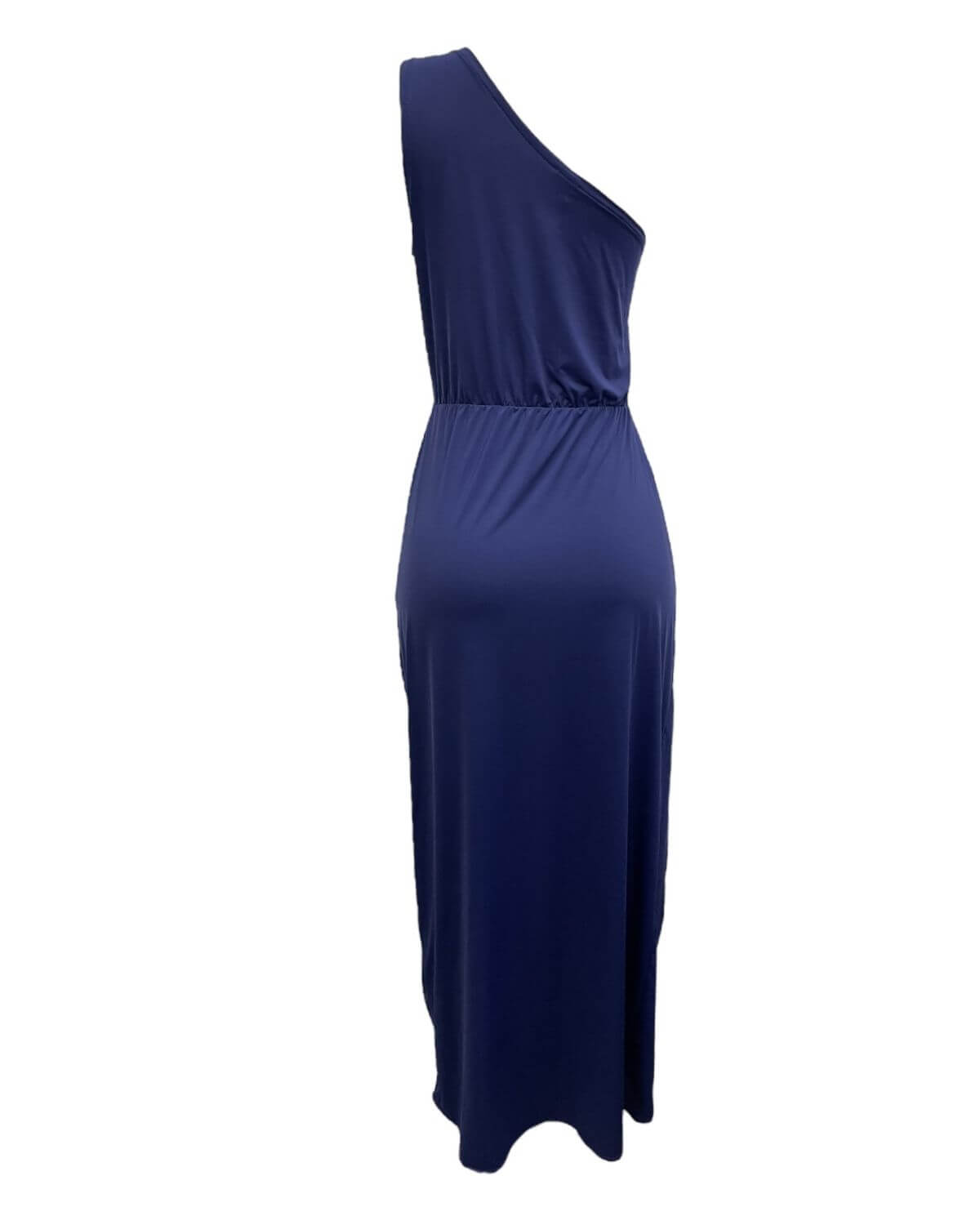 Design elegante, drapeado na cintura entrelaçada que realça a silhueta, o detalhe da fenda lateral adiciona sensualidade e movimento.