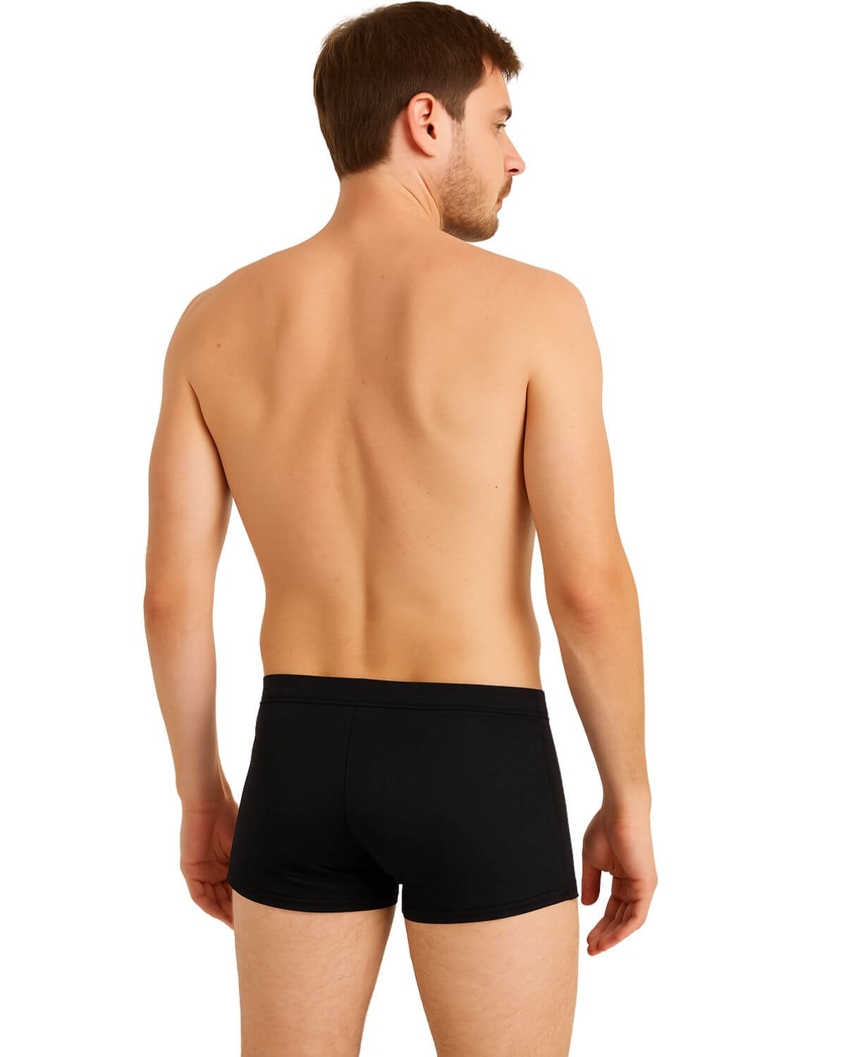 Sunga modelagem boxer, tem cordão de ajuste no cós, possui forro na frente e costas. É resistente ao cloro.