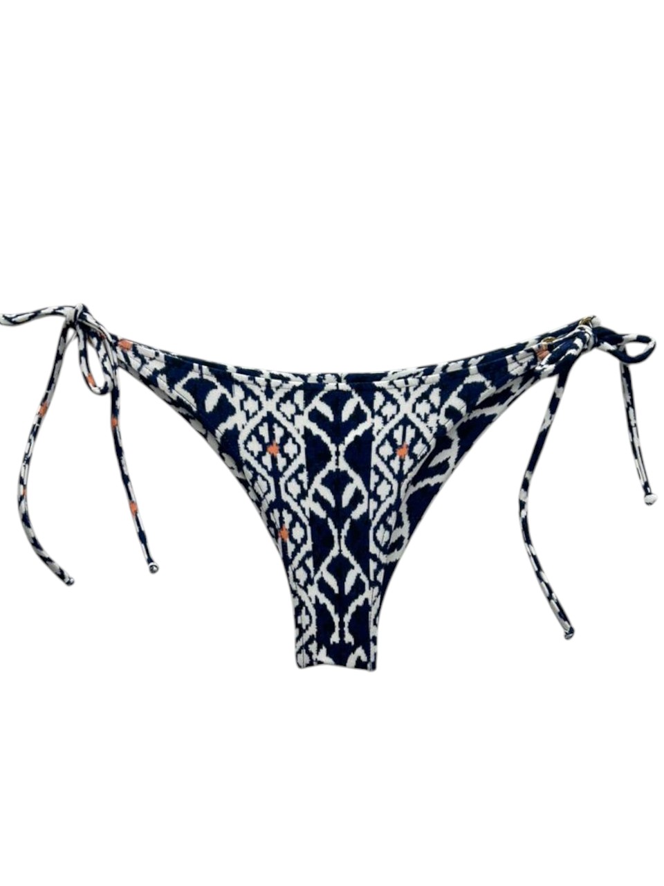 Tanga de Biquíni sem costura na parte de traz, com amarração lateral e detalhe de argolinha dourada.