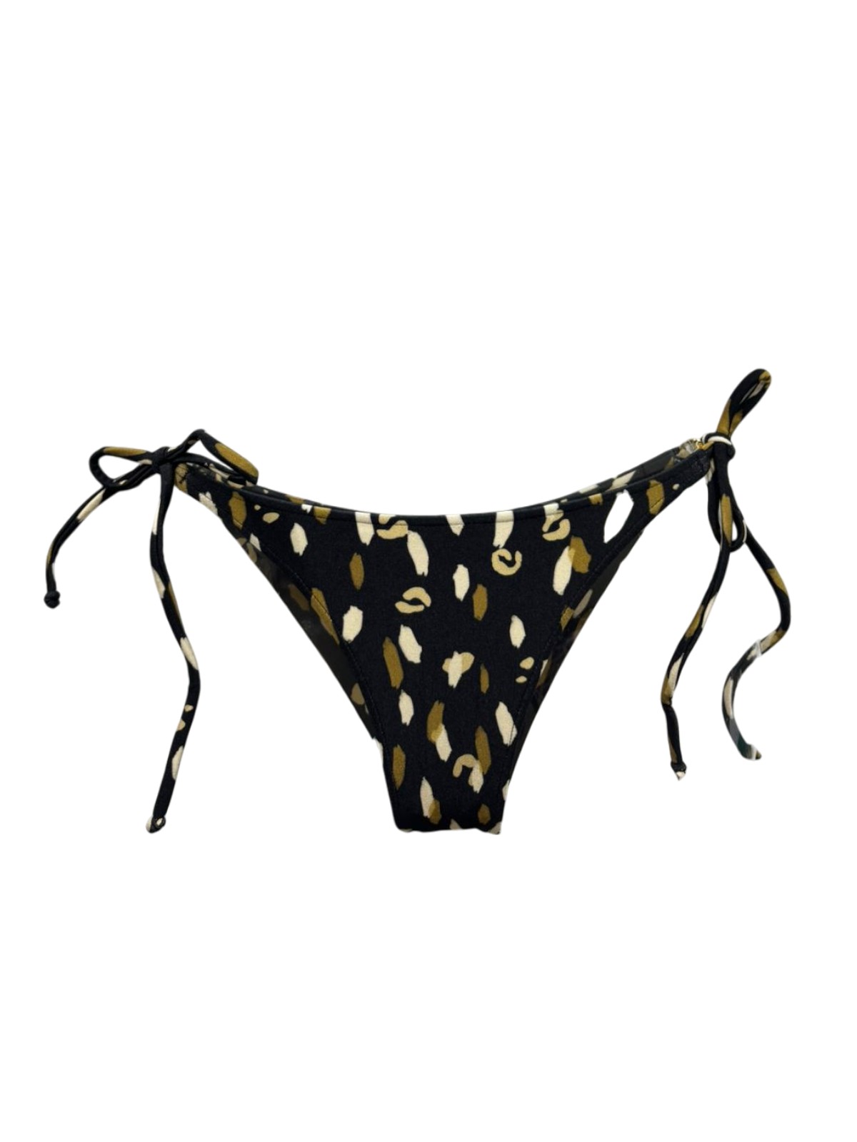 Tanga de Biquíni sem costura na parte de traz, com amarração lateral e detalhe de argolinha dourada.
