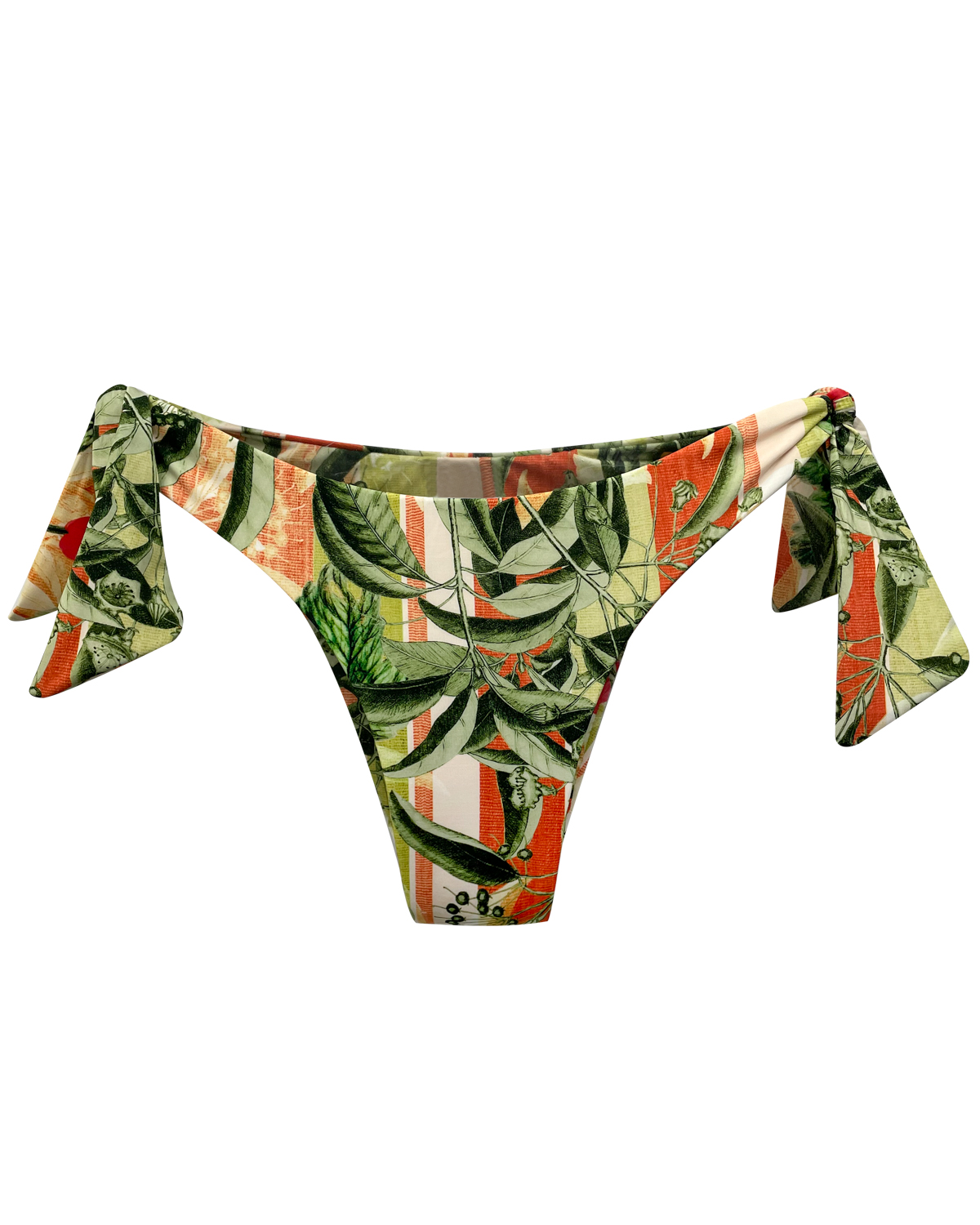Tanga de biquíni estampada sem costura aparente com amarração lateral.