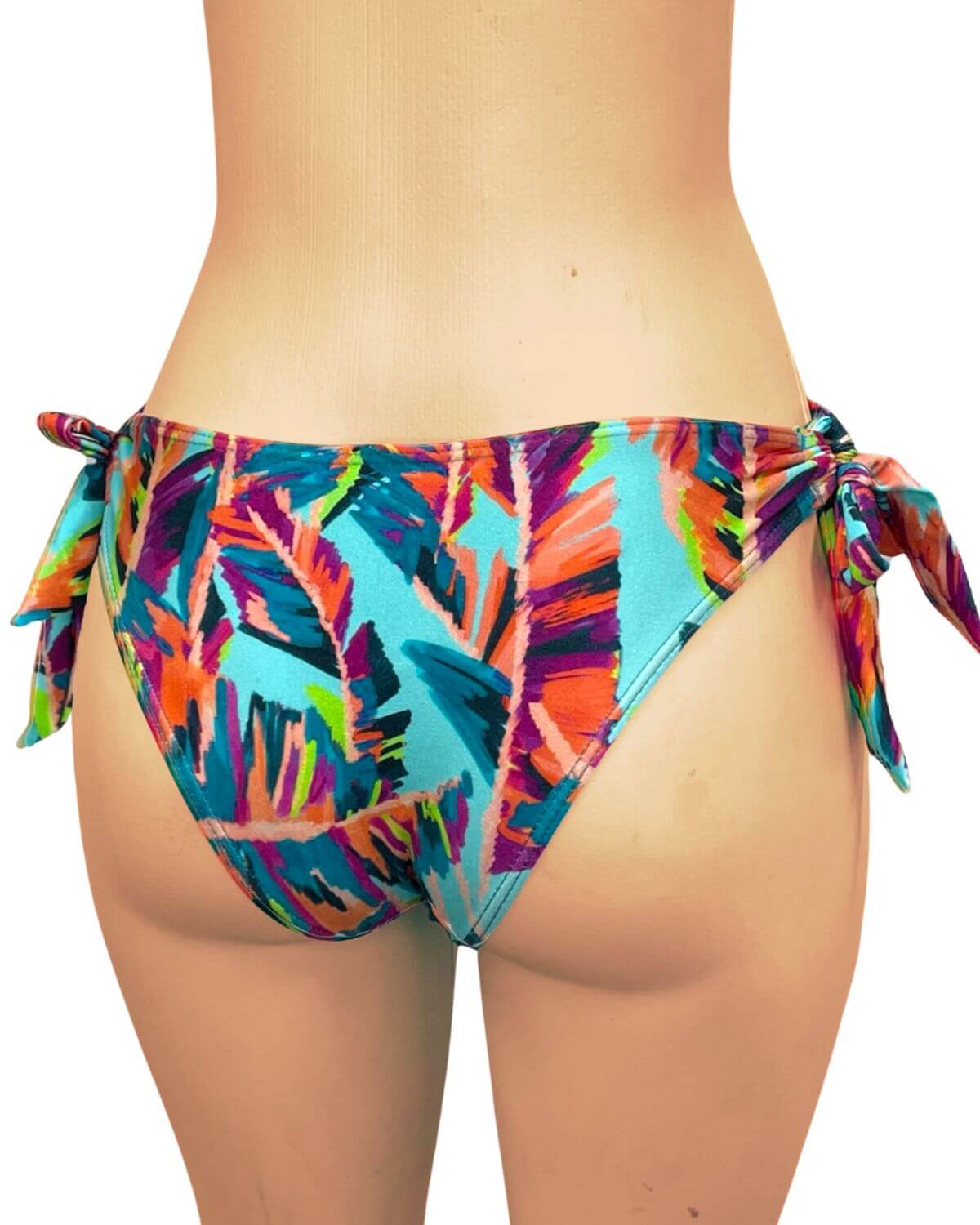 Tanga de biquíni lateral média com detalhe de amarração na lateral. Modelagem muito confortável com ajuste.