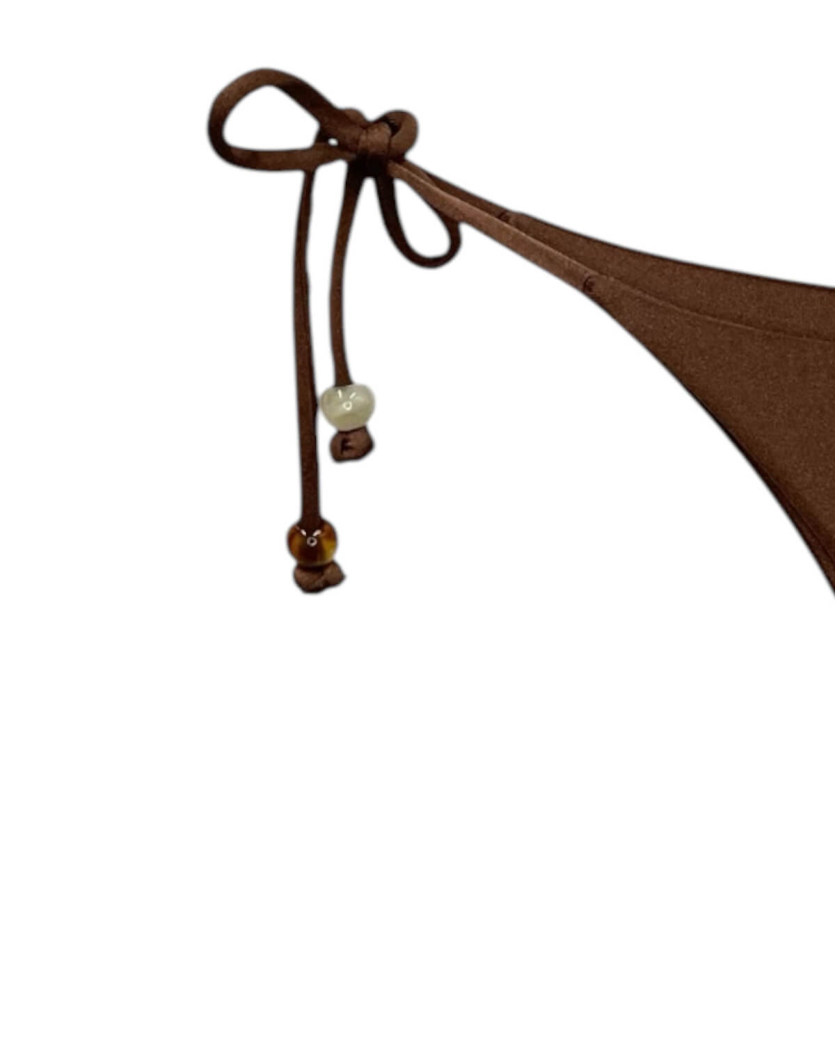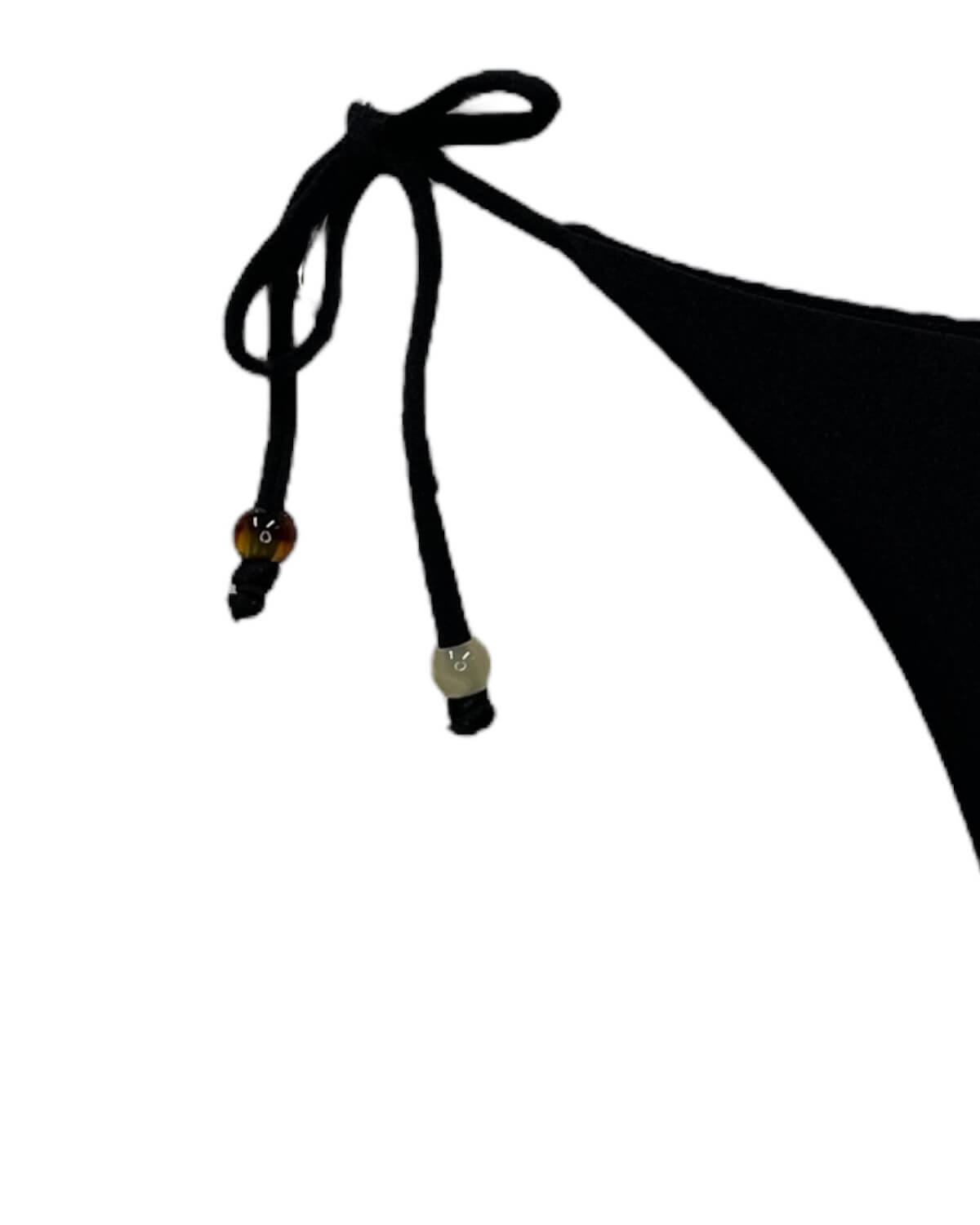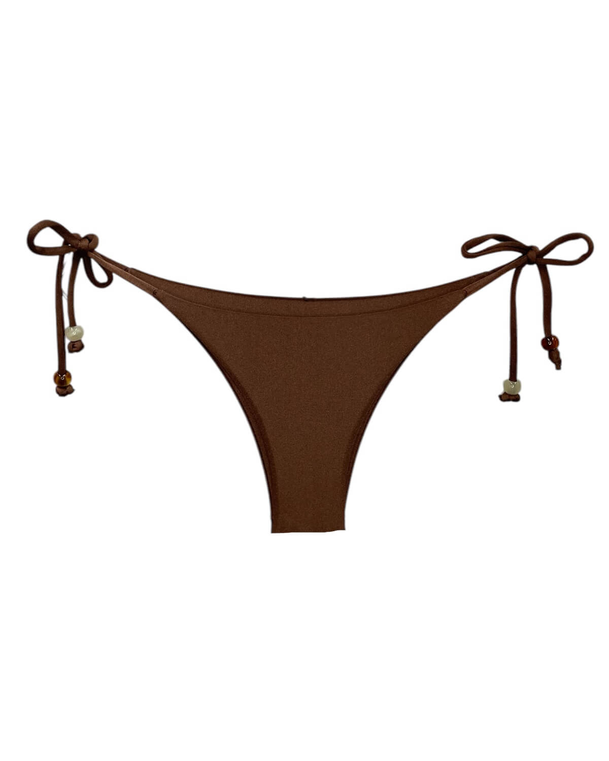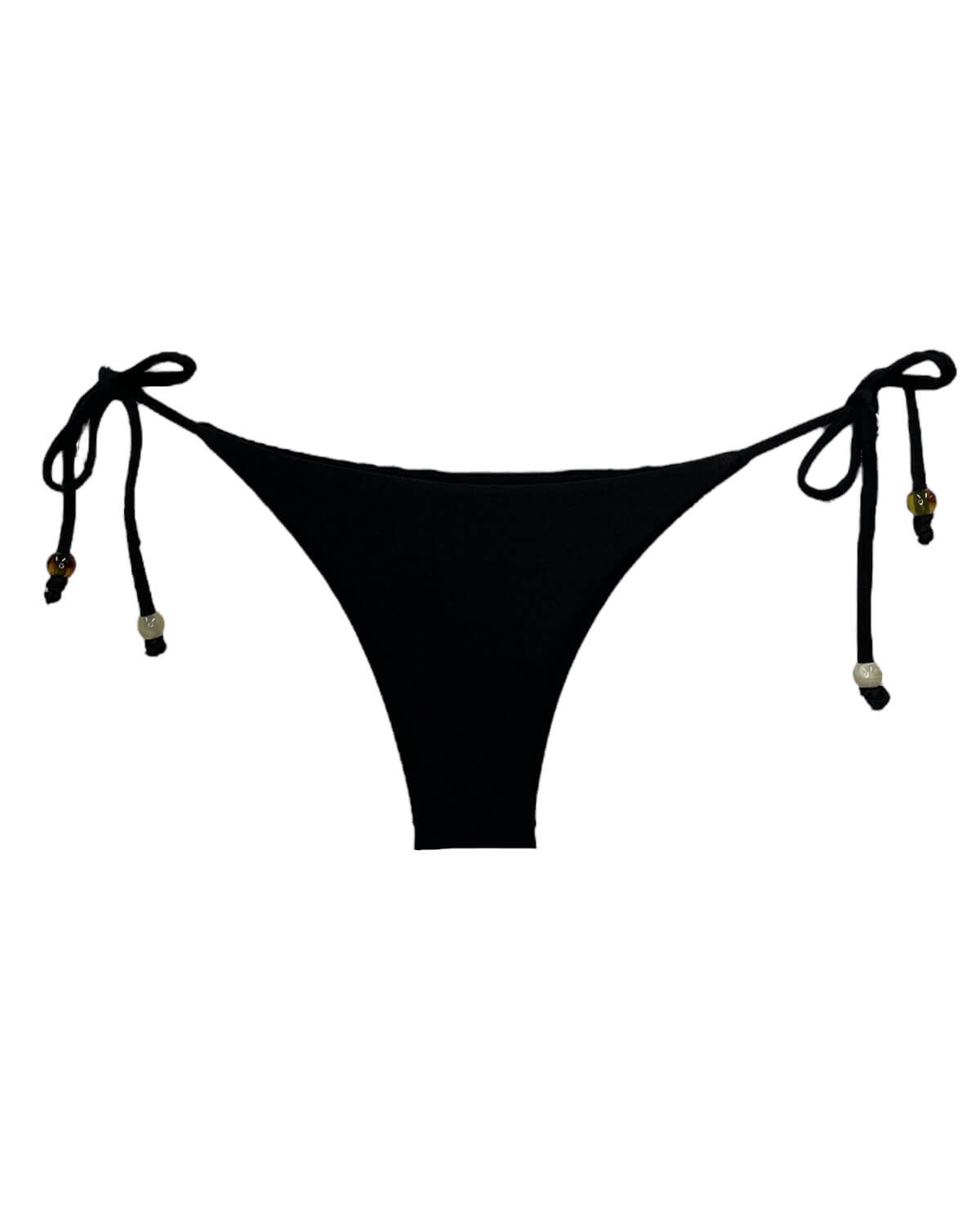Tanga de biquíni com amarração na lateral com laços e Beads (contas) na ponta.