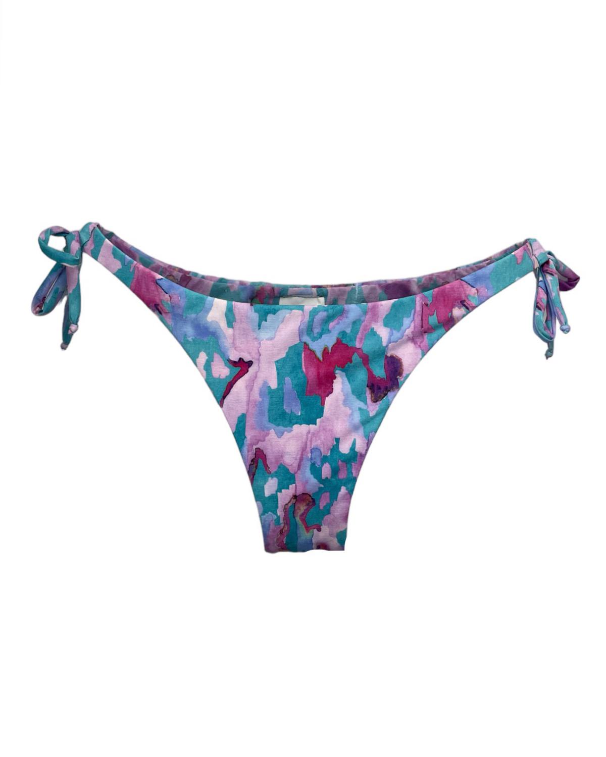 Tanga de biquíni estampada com amarração na lateral e acabamento com elástico embutido. Modelagem pequena. Tecido/composição: 84% Poliéster 16% Elastano Proteção UV. 50 +.