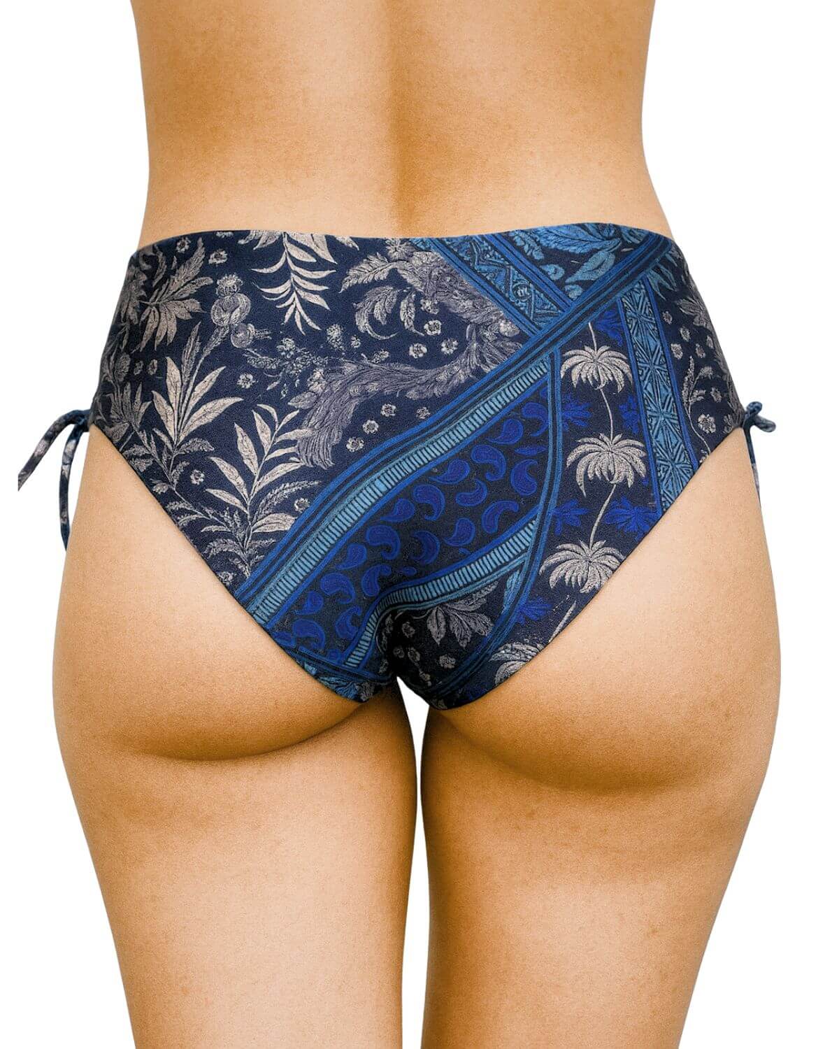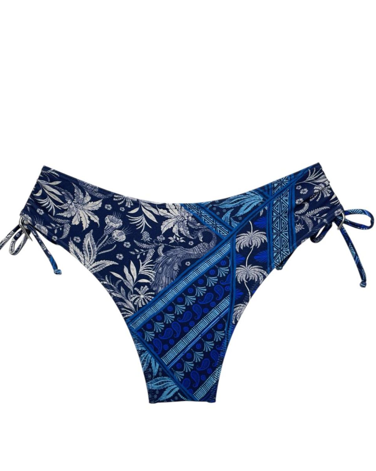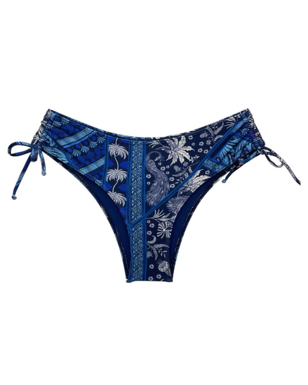 Tanga de biquíni lateral média com detalhe franzido e regulável.