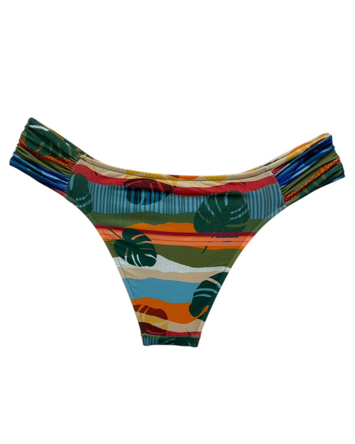 Tanga de biquíni lateral média com detalhe drapeado.