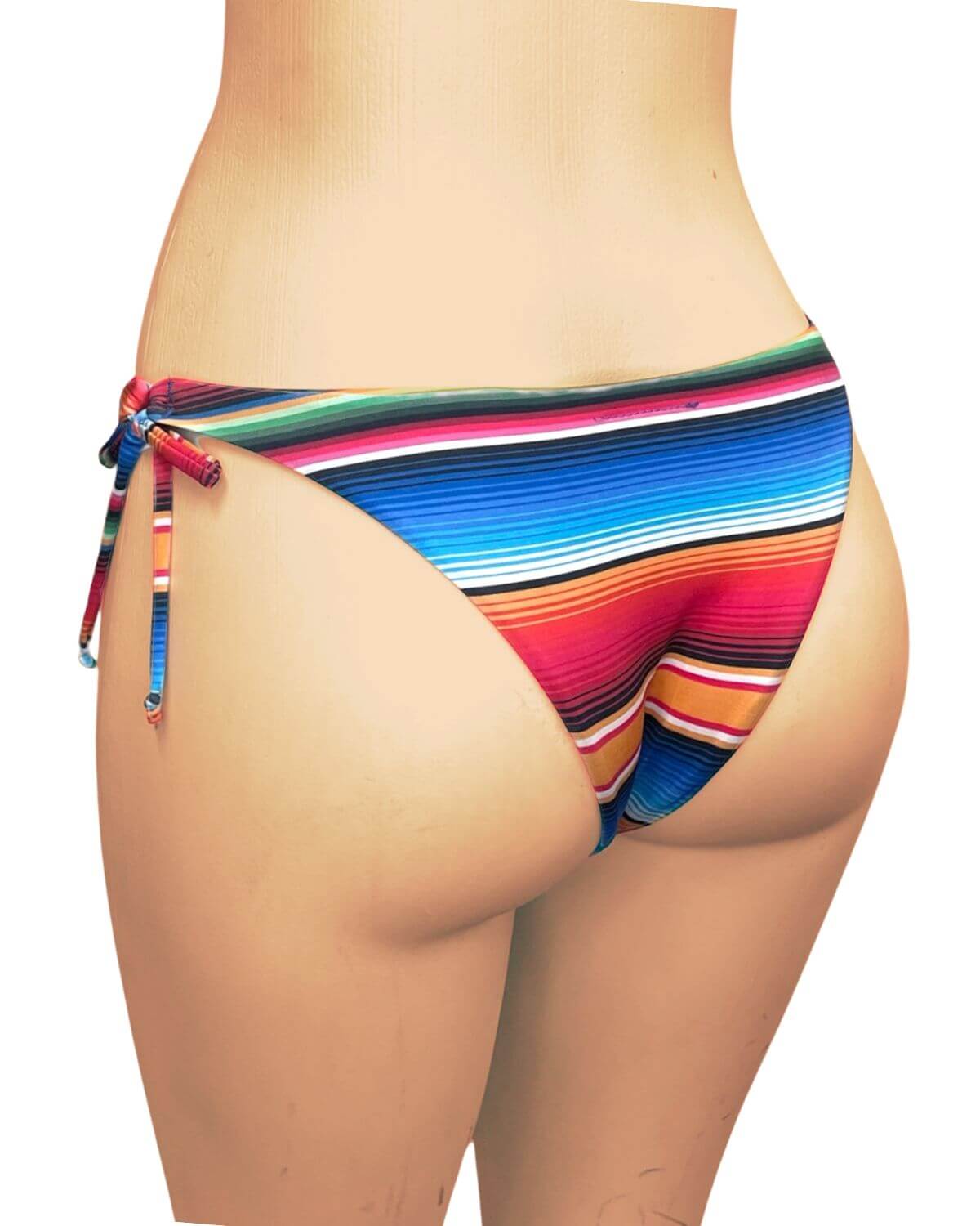 Tanga de biquíni estampada lateral estreita com amarração e acabamento com elástico embutido. Modelagem pequena.