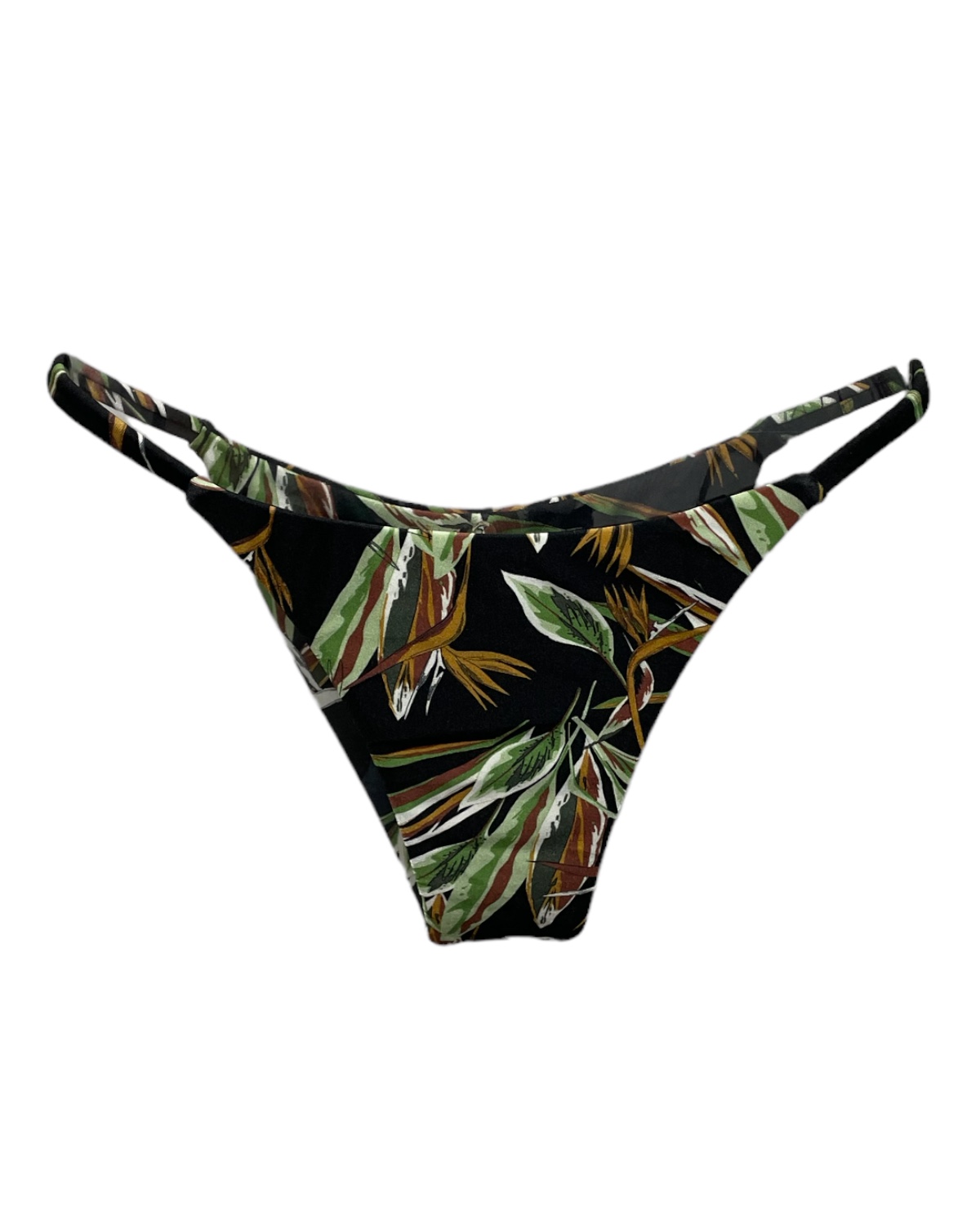 Calcinha de Biquíni lateral fina com costuras internas e elástico embutido na parte frontal. Possui bumbum duplo com recorte central sem costura.