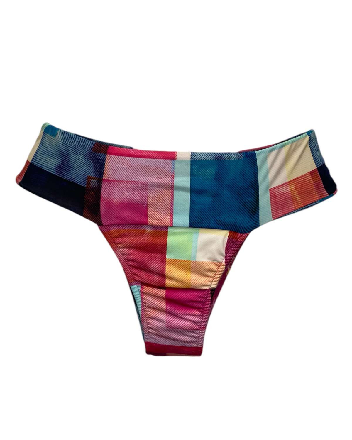 Tanga de biquíni estampada cós pala larga, modelagem media e levemente cavada no bumbum.