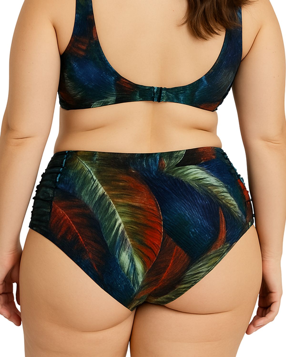 Tanga de biquíni plus size com lateral drapeada. Modelagem alta e confortável que se apta ao corpo.