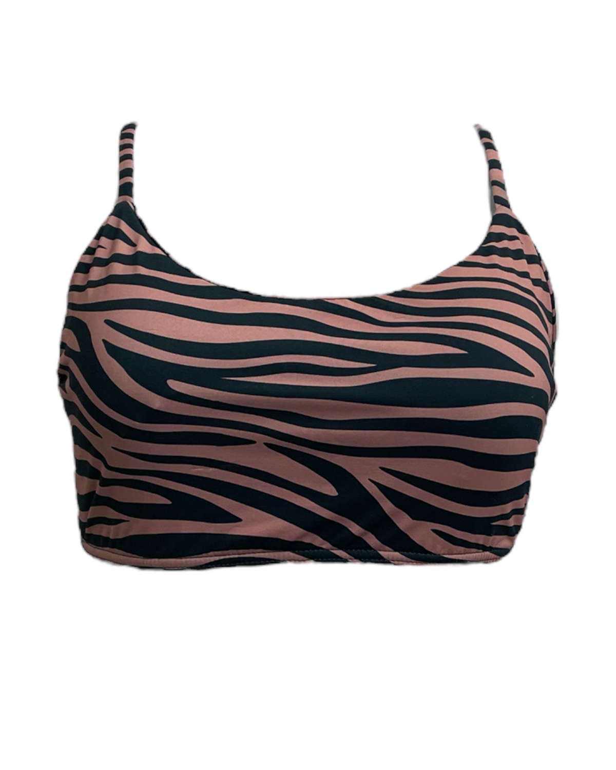 Top básico de biquíni estampado com decote redondo, costas reta, alças reguláveis e bojo removível.