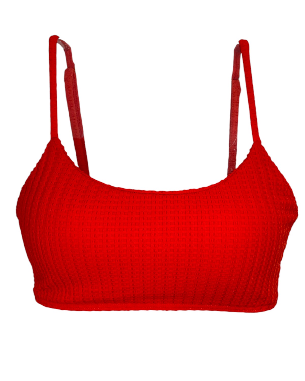 Top de biquíni básico decote redondo, costas reta, alças reguláveis e bojo removível.
