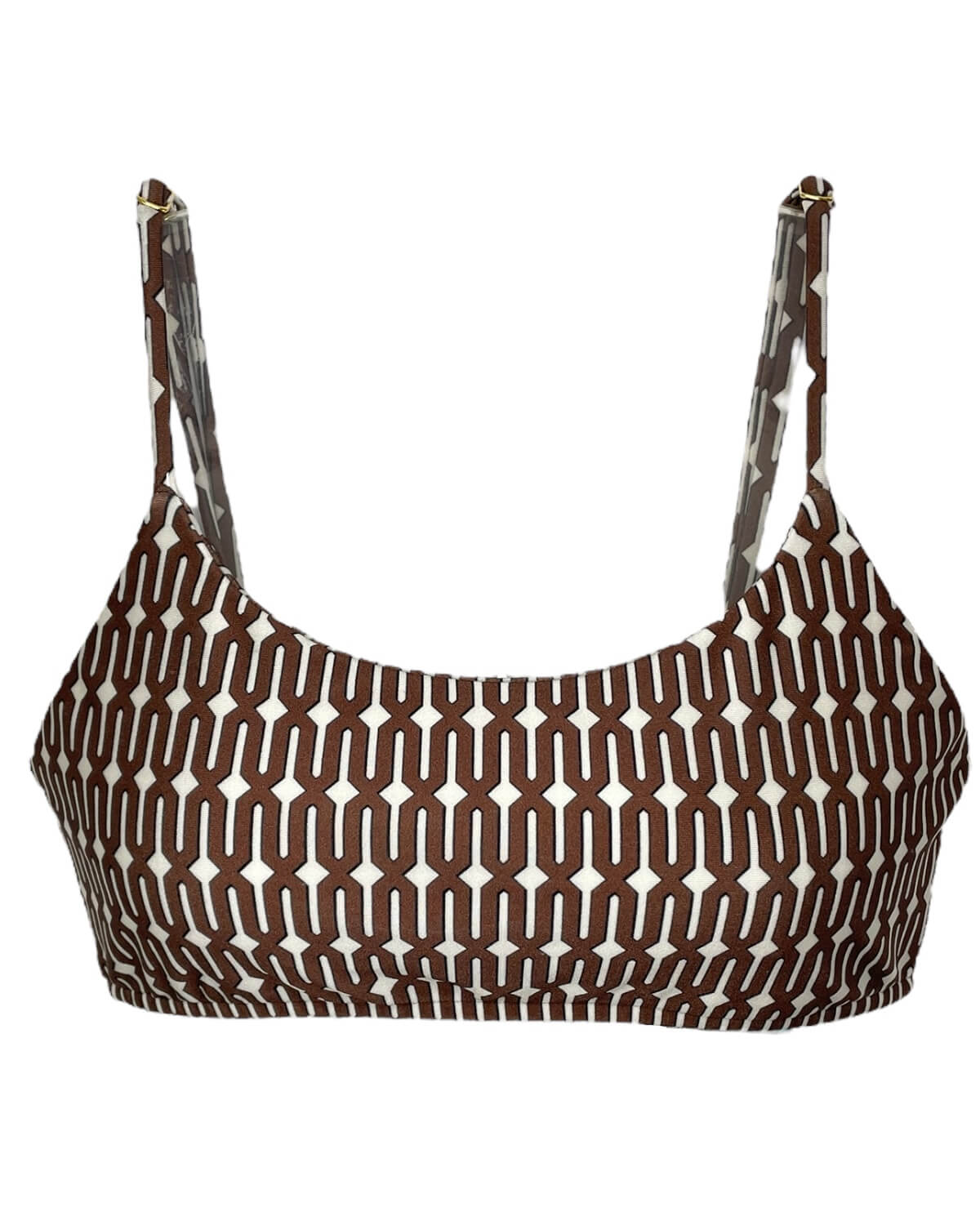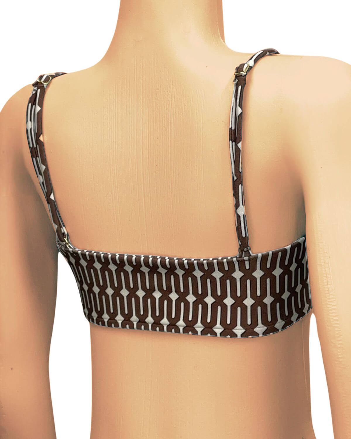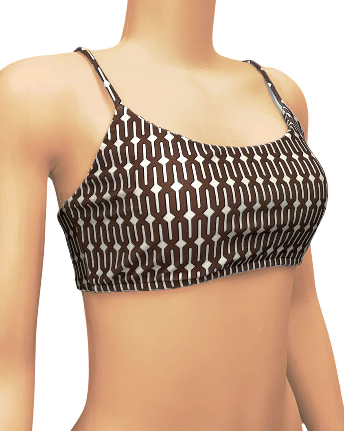 Top de biquíni básico estampado com decote redondo, costas reta, alças reguláveis e bojo removível. Modelo ideal para quem busca conforto