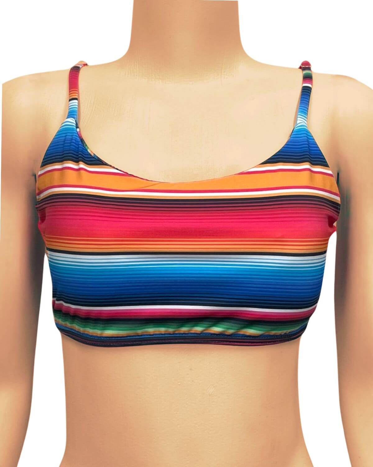 Top de biquíni básico estampado com decote redondo, costas reta, alças reguláveis e bojo removível. Modelo ideal para quem busca conforto
