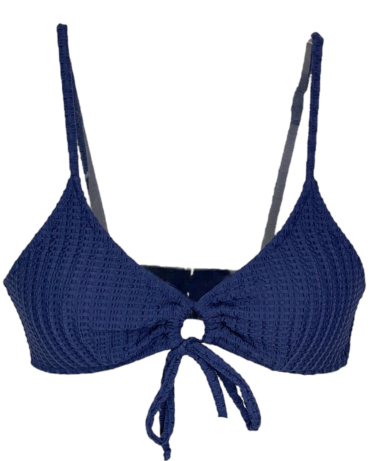 Confeccionado em tecido com textura, sua superfície apresenta leve relevo formando desenhos. É um tecido confortável, sedoso e com elasticidade. Cor : Marinho