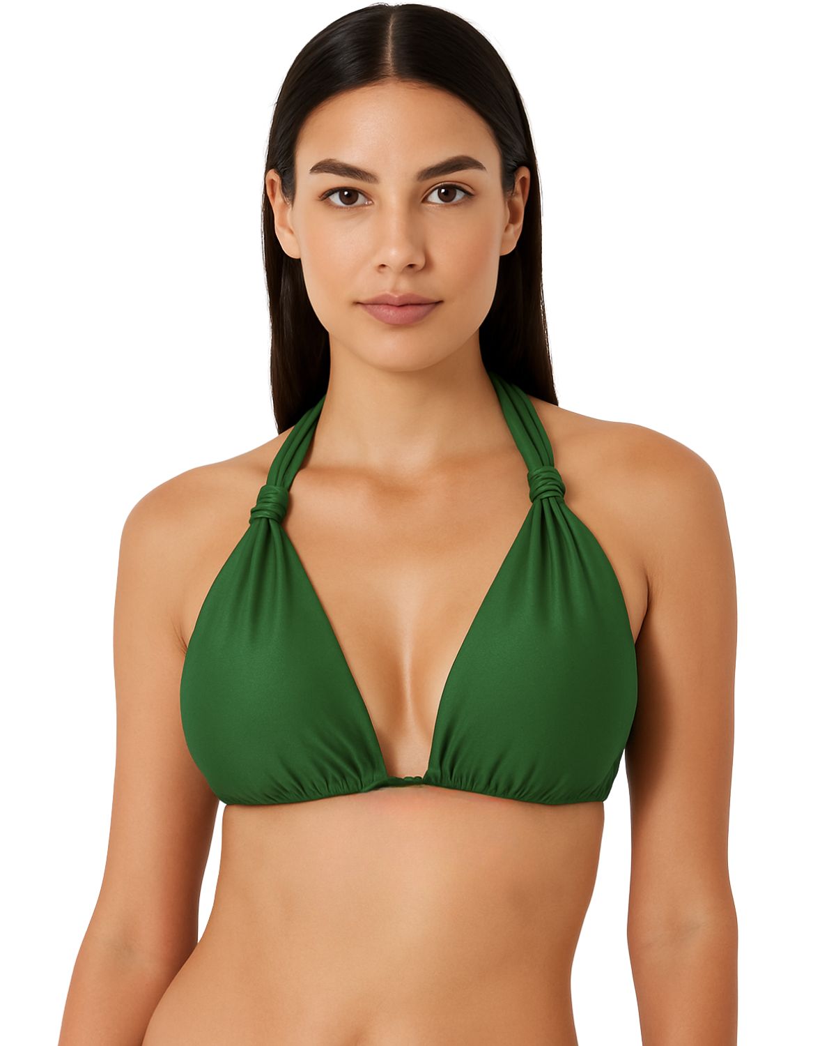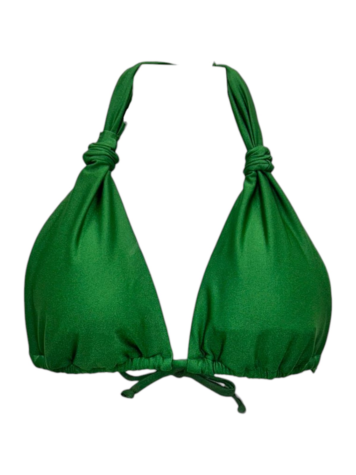 Top de biquíni modelo cortinão frente única com bojo removível, amarração no pescoço e costas.