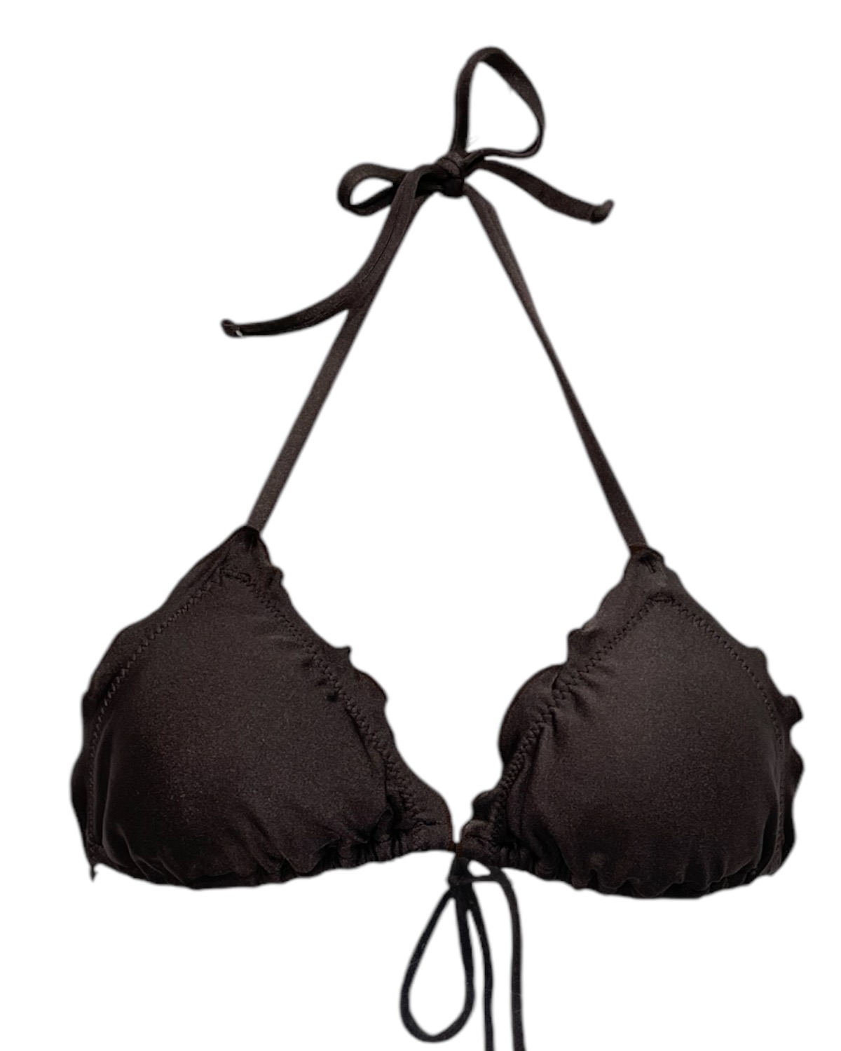 Top de biquíni cortininha com babadinho contrastante e bojo removível. Possui amarração no pescoço e nas costas.