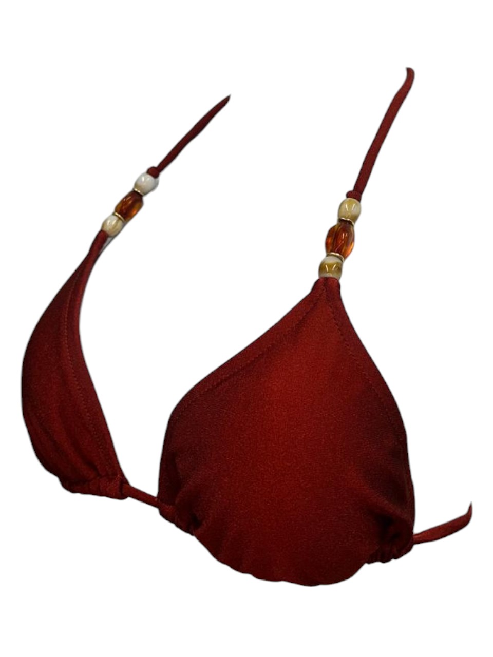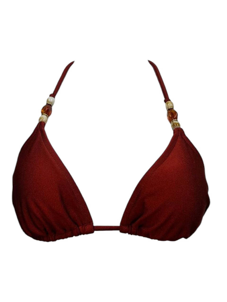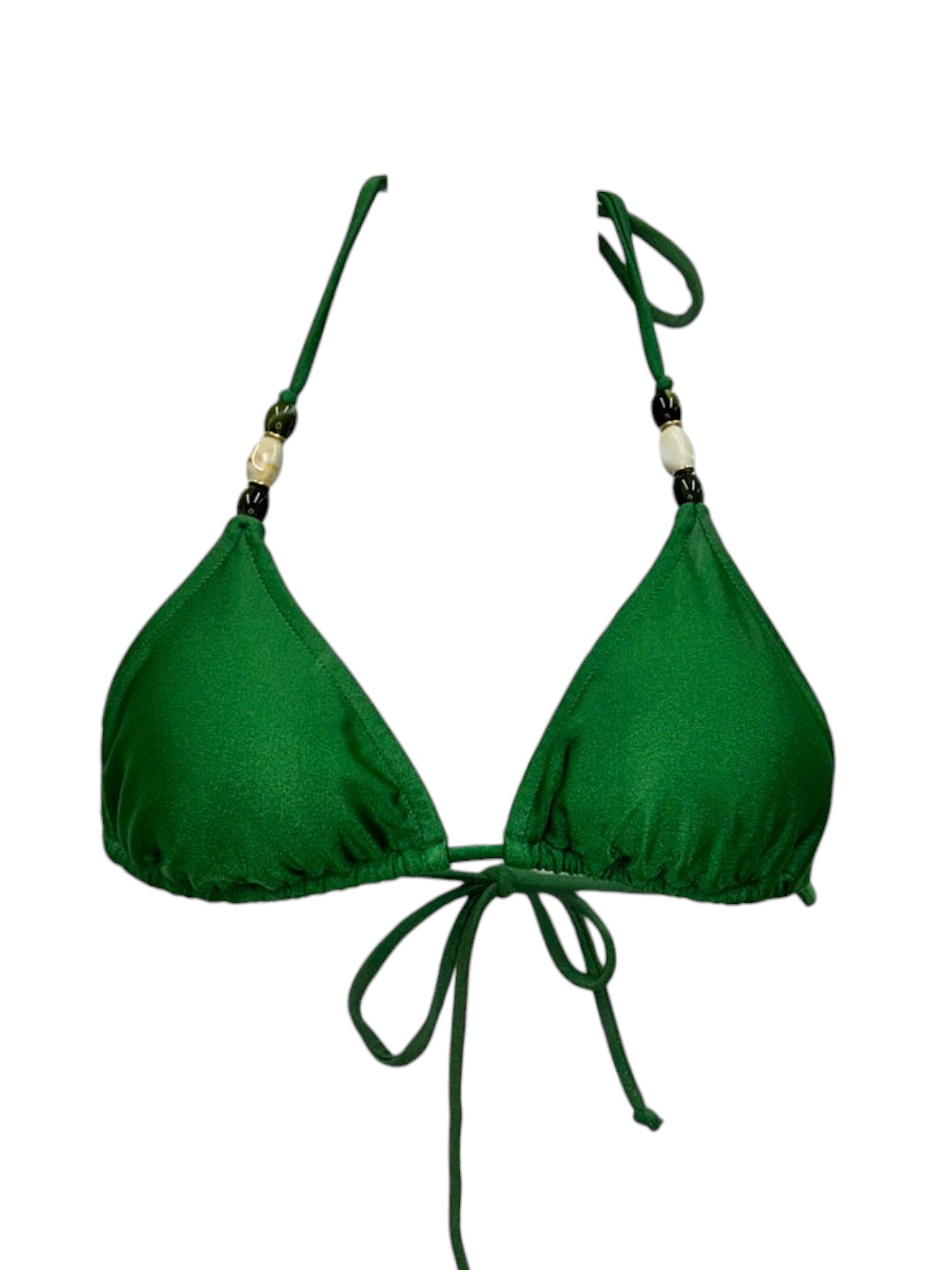 Top de biquíni modelo cortininha com bojo removível e amarração no pescoço e nas costas. Confeccionado em tecido trilobal com leve brilho. Detalhes nas alças feitos à mão com contas ( Beads) e metais.