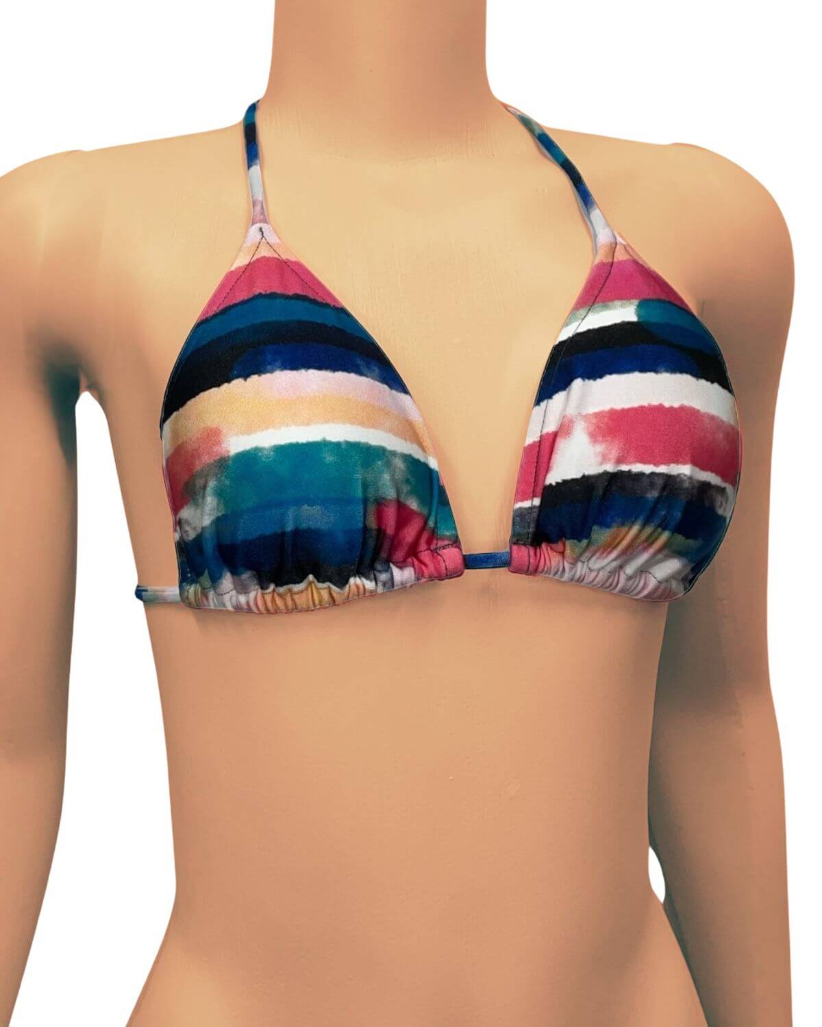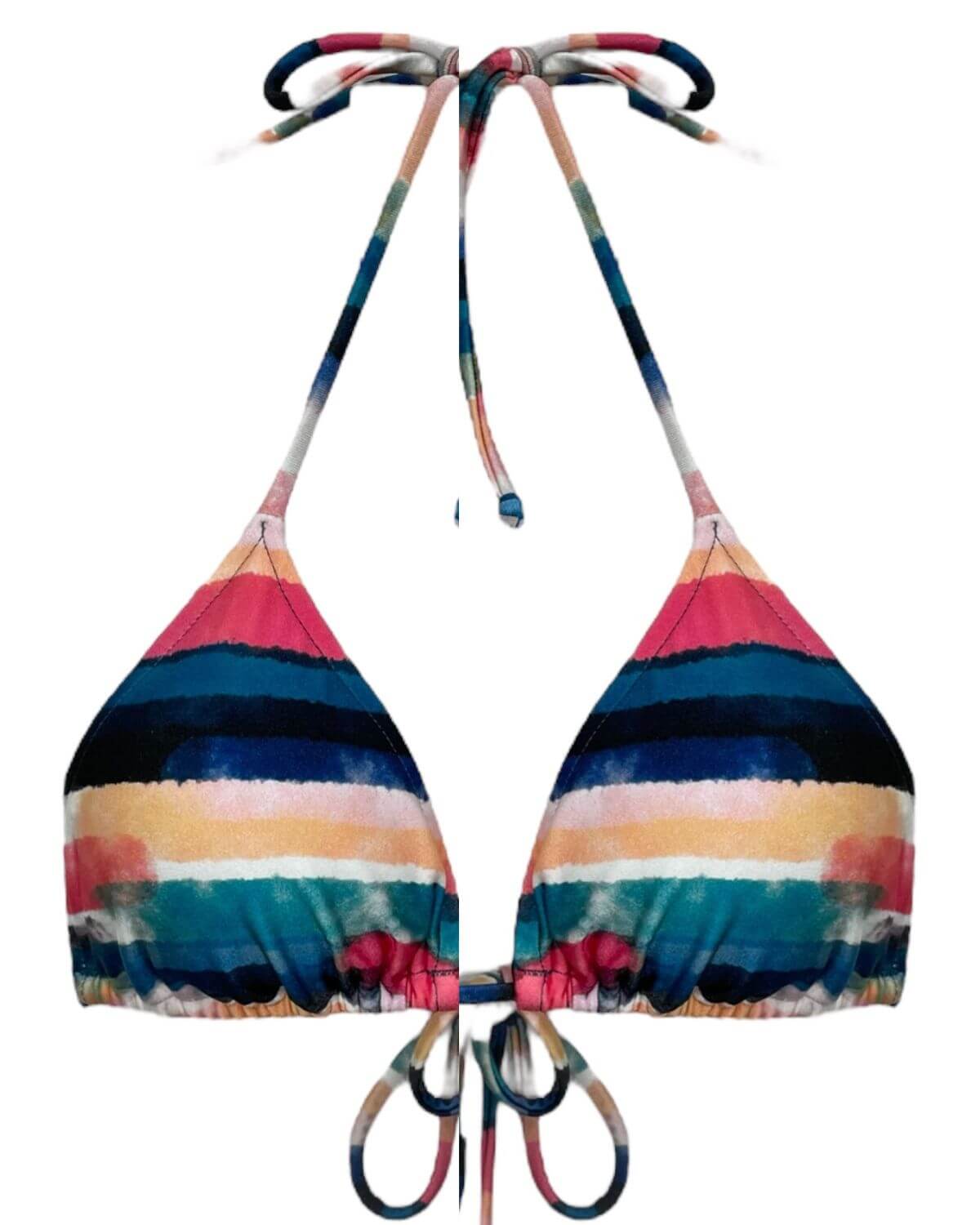 Top de biquíni modelo cortininha com bojo removível e amarração no pescoço e nas costas. Estampa: Playa