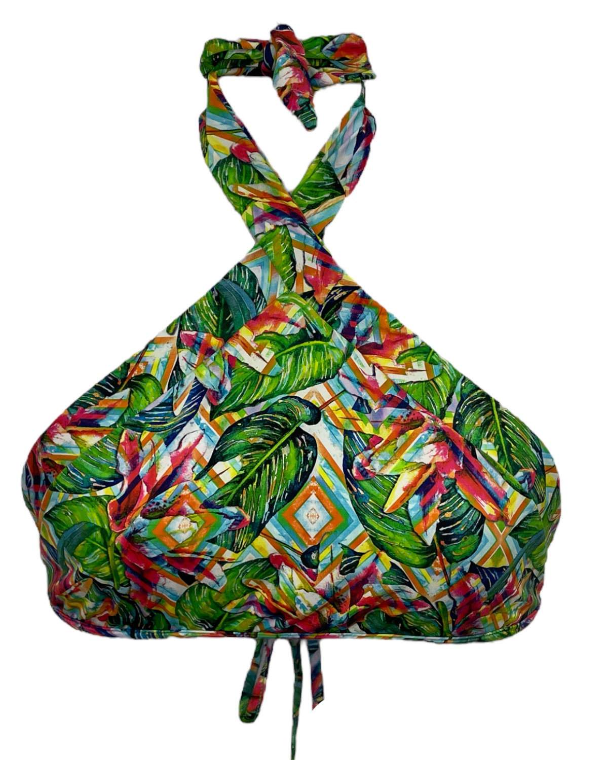 Top de biquíni cropped cruzado e amarrado no pescoço e nas costas sem bojo Tecido/composição 84% Poliester 16% Elastano.