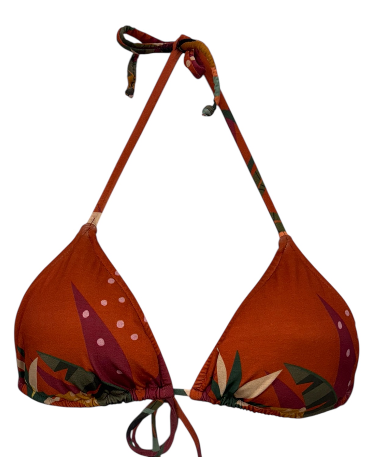 Top de biquíni modelo cortininha com bojo removível e amarração no pescoço e nas costas. Estampa: Hit Rose .