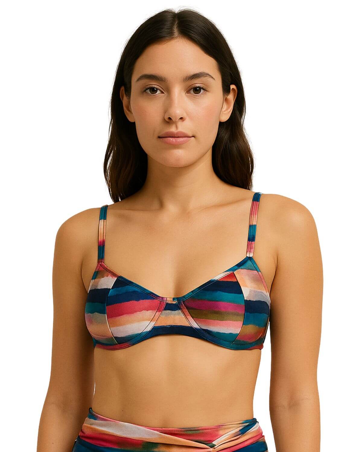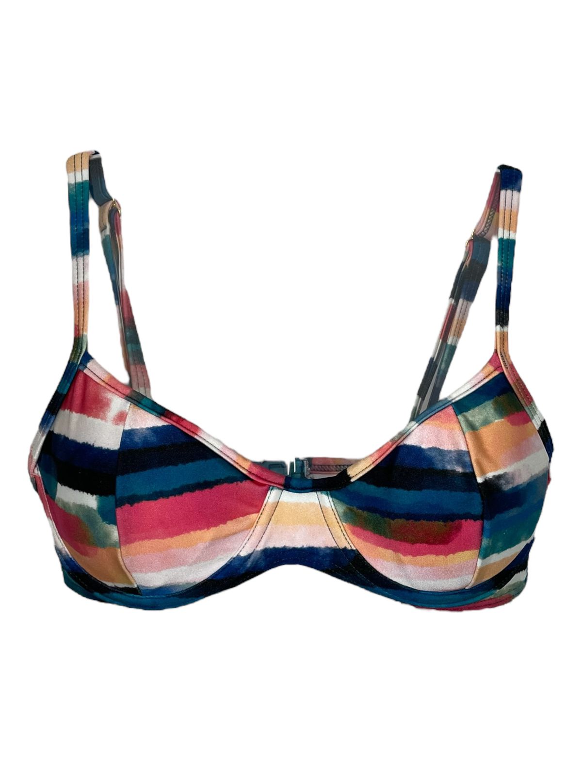 Top de biquíni modelo meia taça com aro e Bojo fixo. Este modelo apresenta alças reguláveis e fecho nas costas.