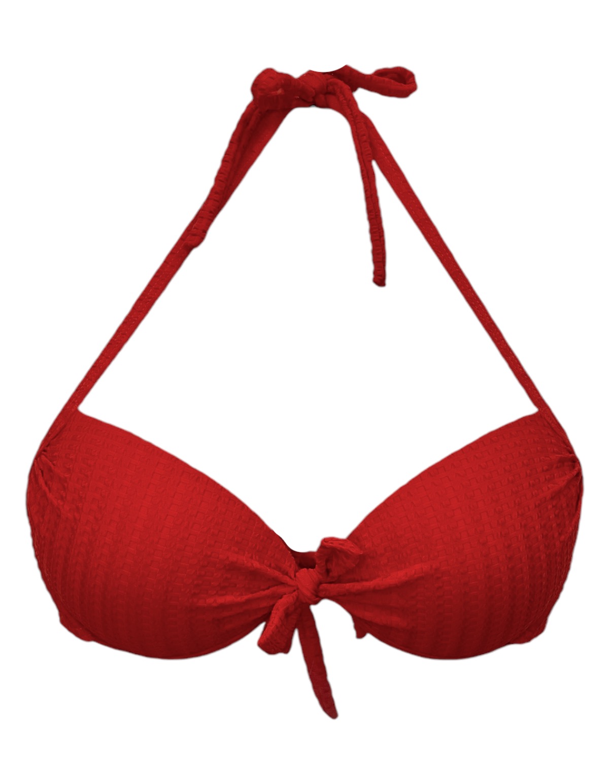 Top de biquíni meia taça com bojo e laço Frontal, possui amarração no pescoço e costas.