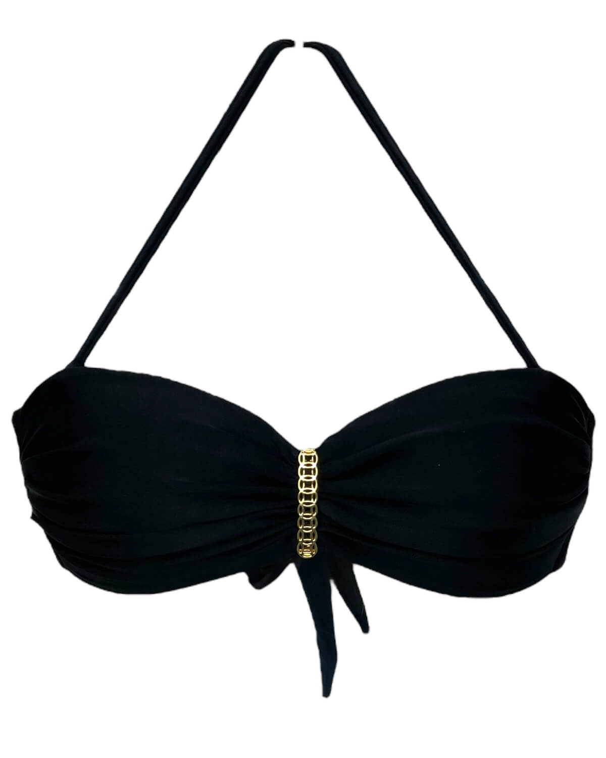 Top de biquíni tomara que caia com bojo e fivela , possui alças removíveis no pescoço e amarração nas costas.