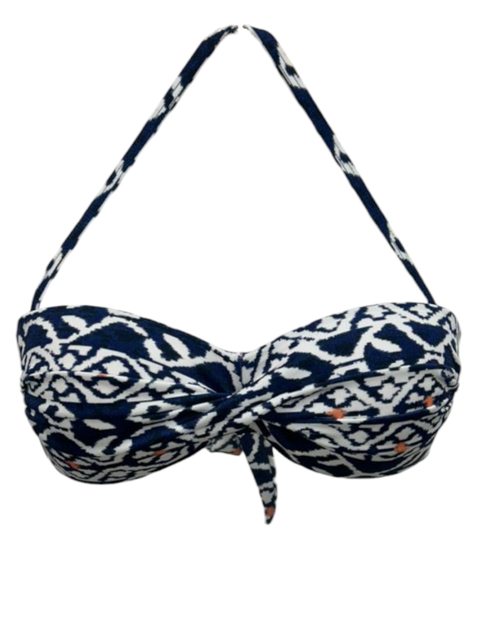 Top de biquíni estampado modelo tomara que caia com bojo inteiro.