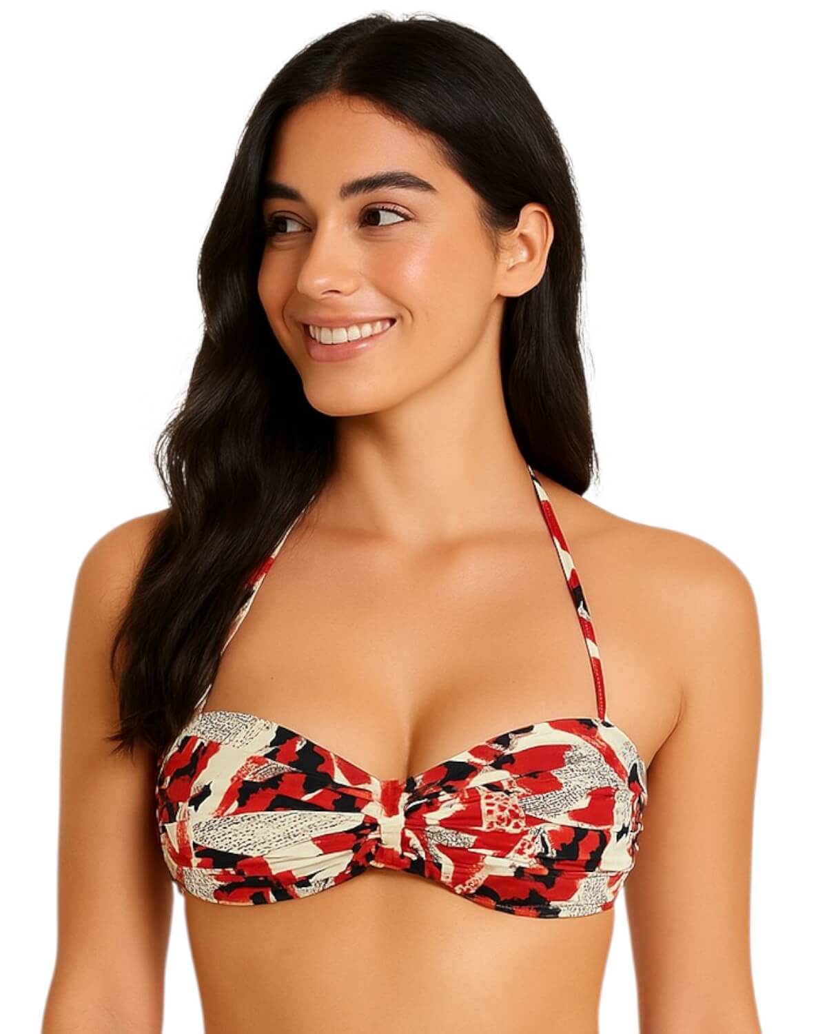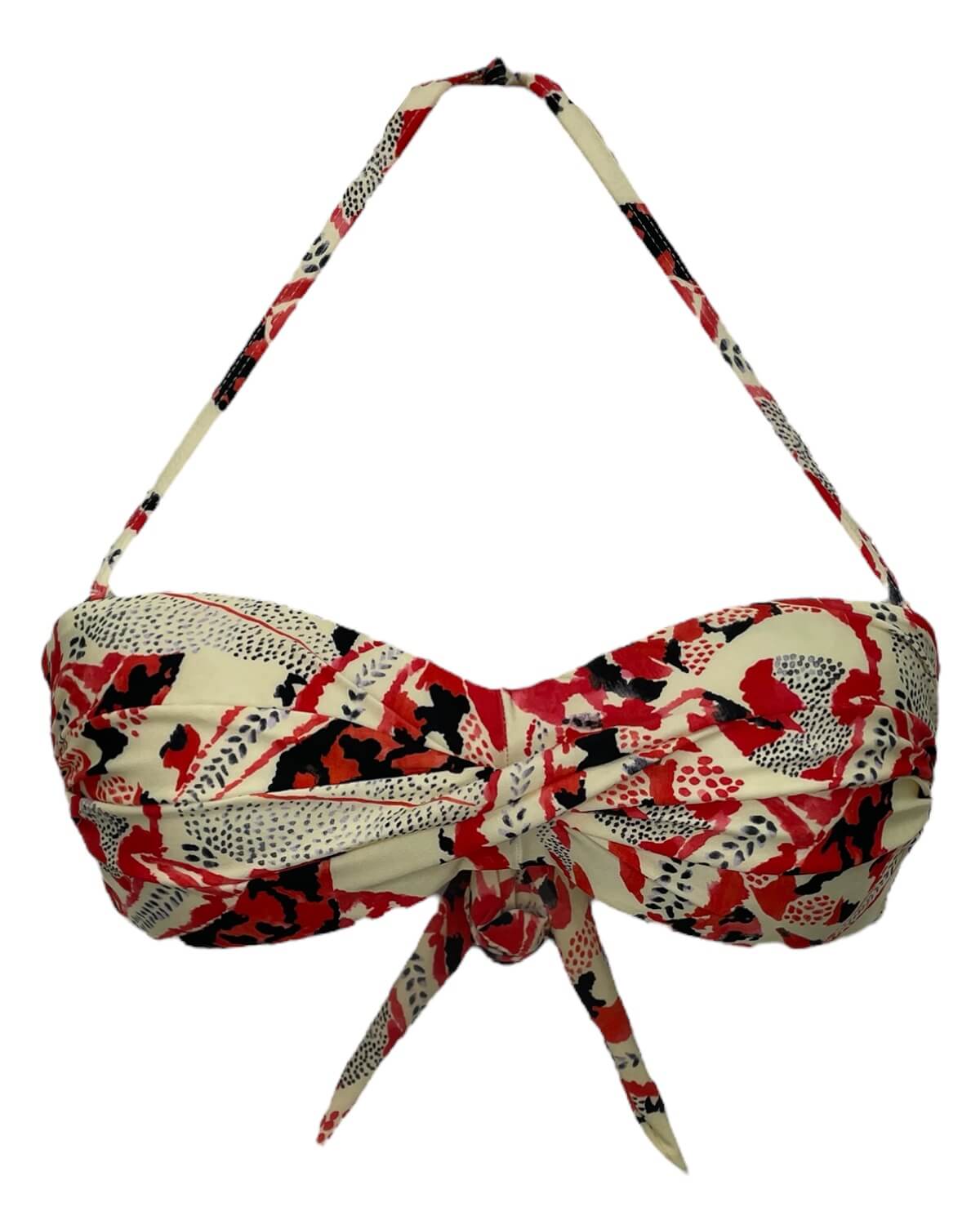 Top de biquíni estampado modelo tomara que caia com bojo inteiro.