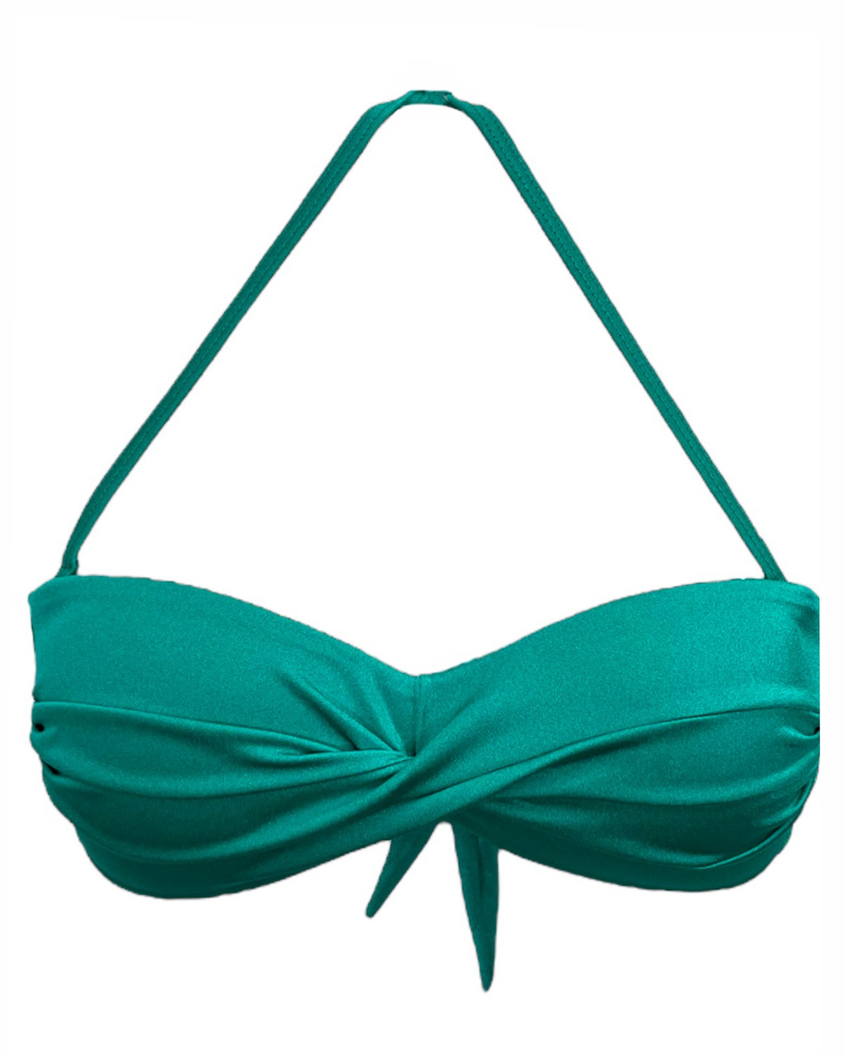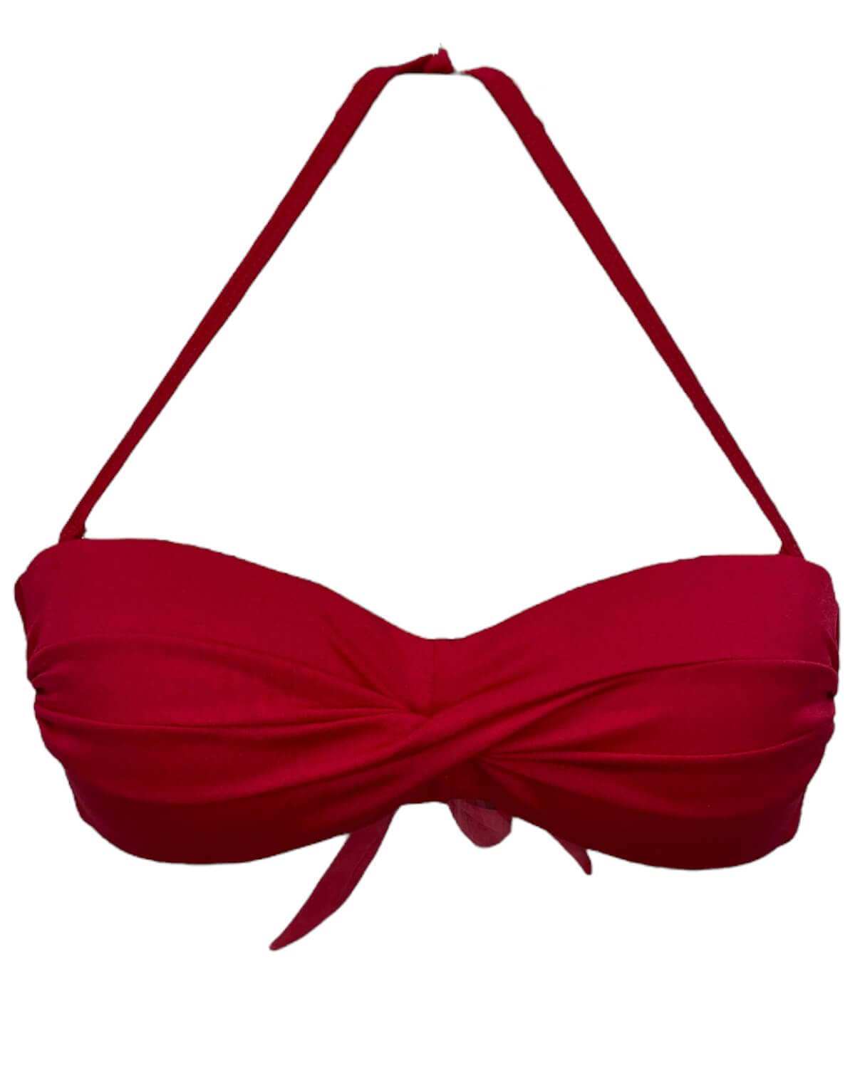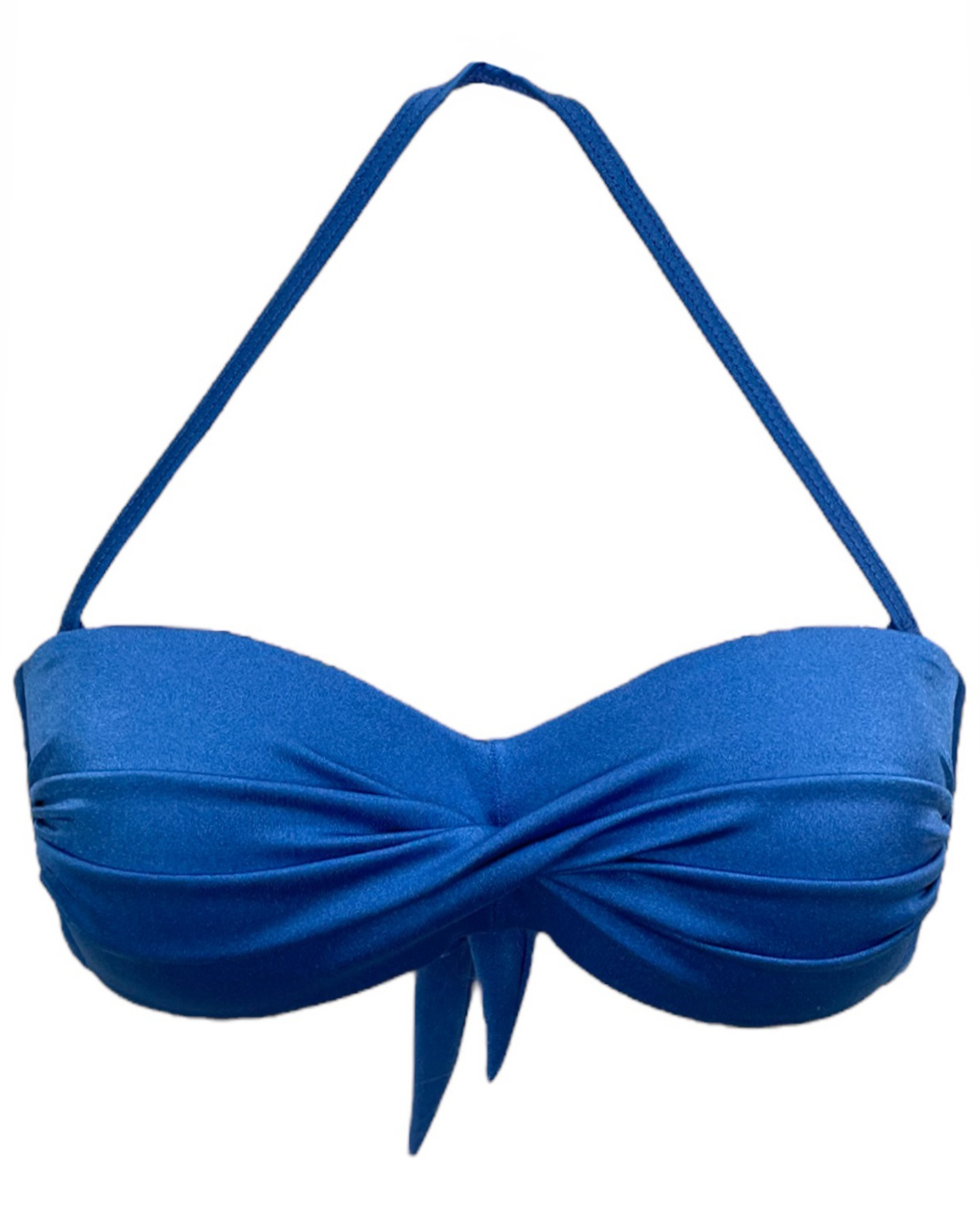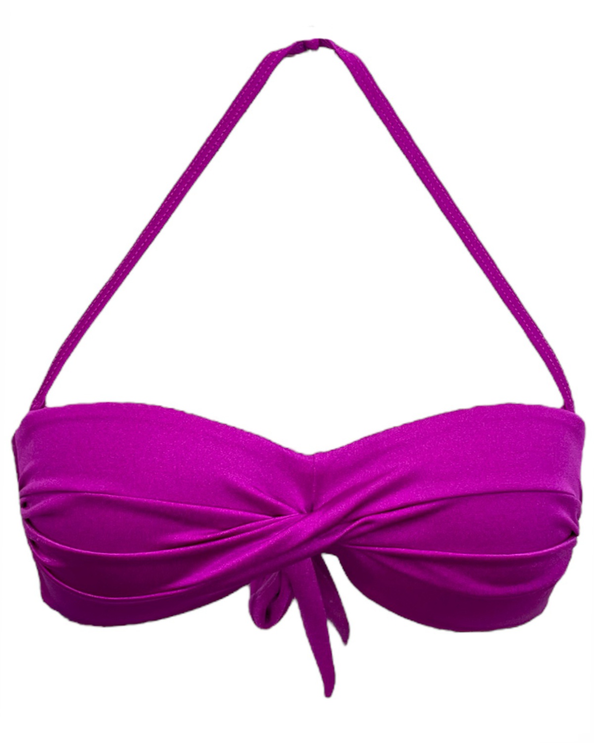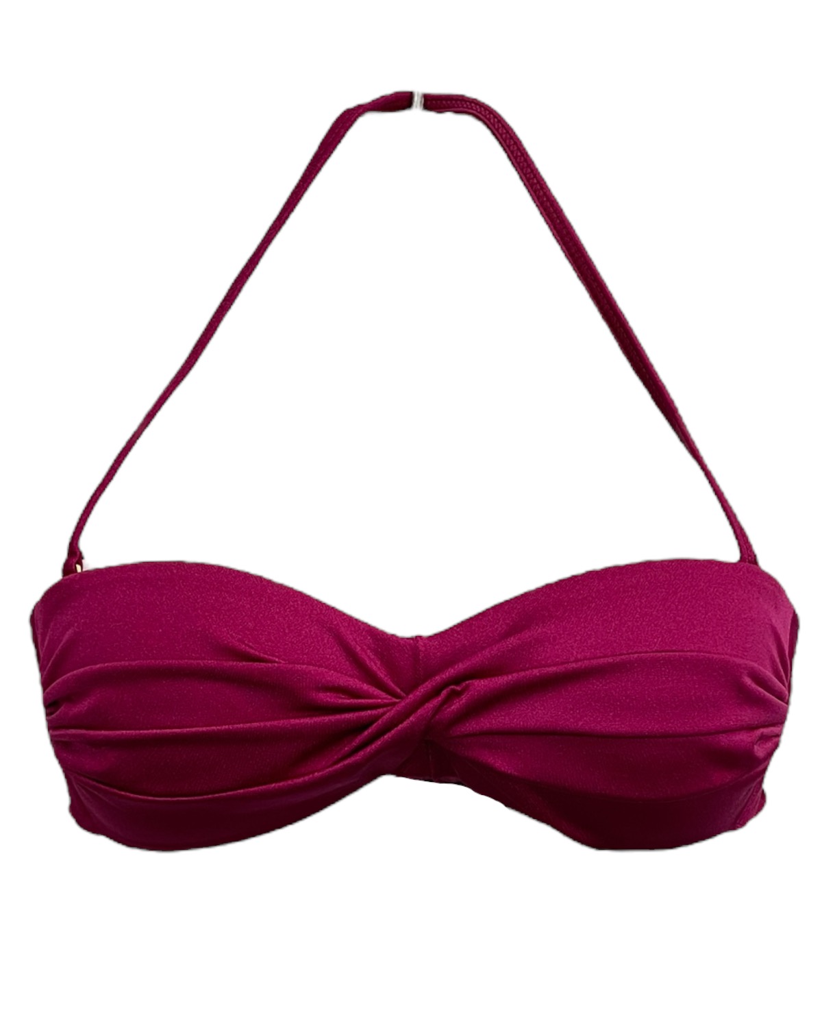 Top de biquíni tomara que caia com bojo estruturado, possui alças removíveis no pescoço e amarração nas costas.