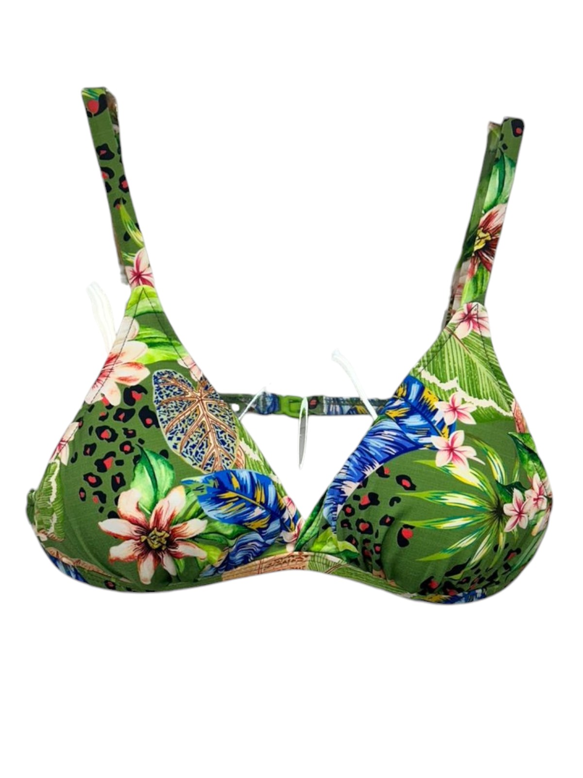 Top de biquíni com bojo removível, levemente transpassado na frente com alças finas, reguláveis e fecho nas costas. Modelo muito confortável com boa sustentação para os seios.