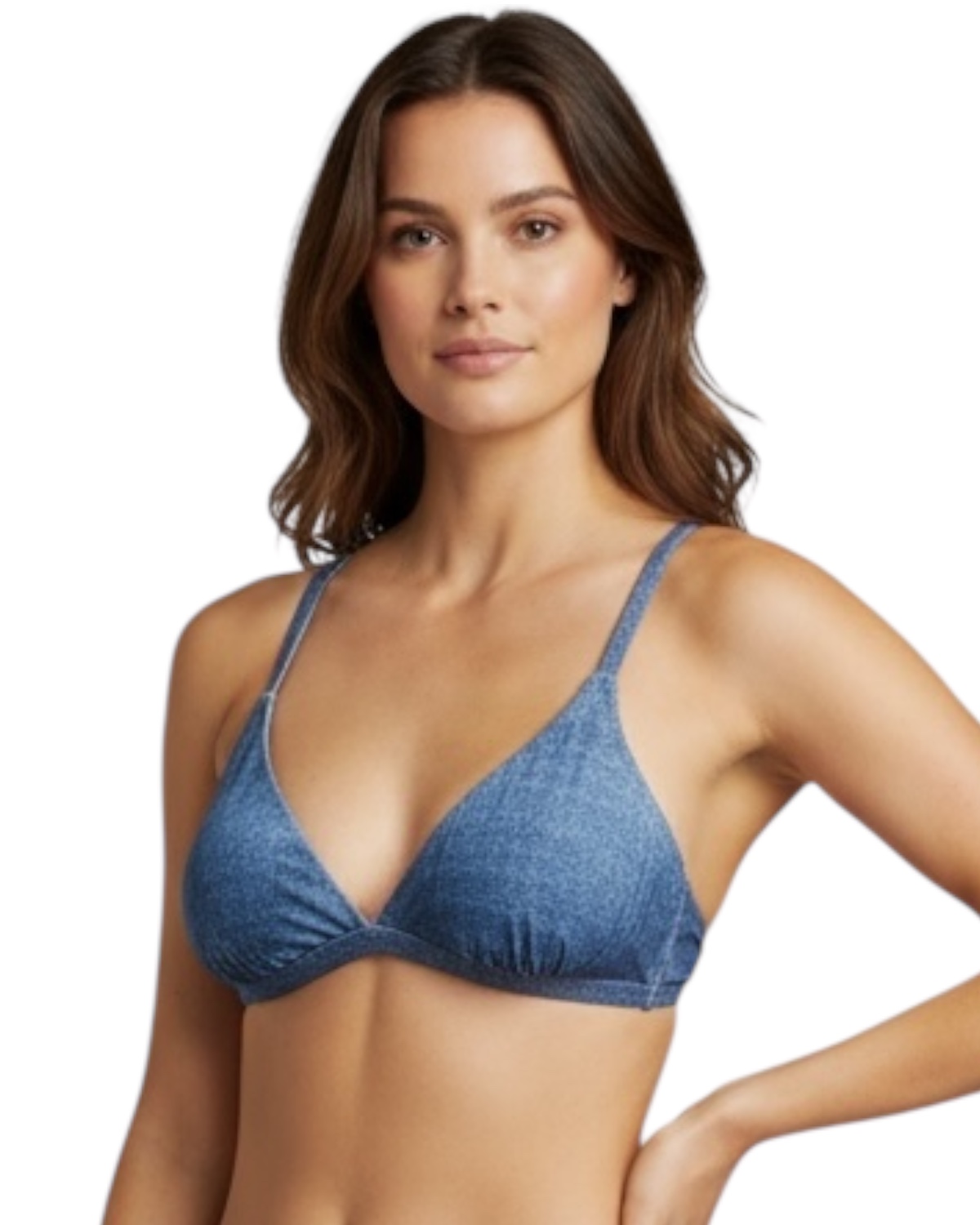 Top de biquíni com bojo removível, levemente transpassado na frente com alças finas, reguláveis e fecho nas costas. Modelo muito confortável com boa sustentação para os seios.