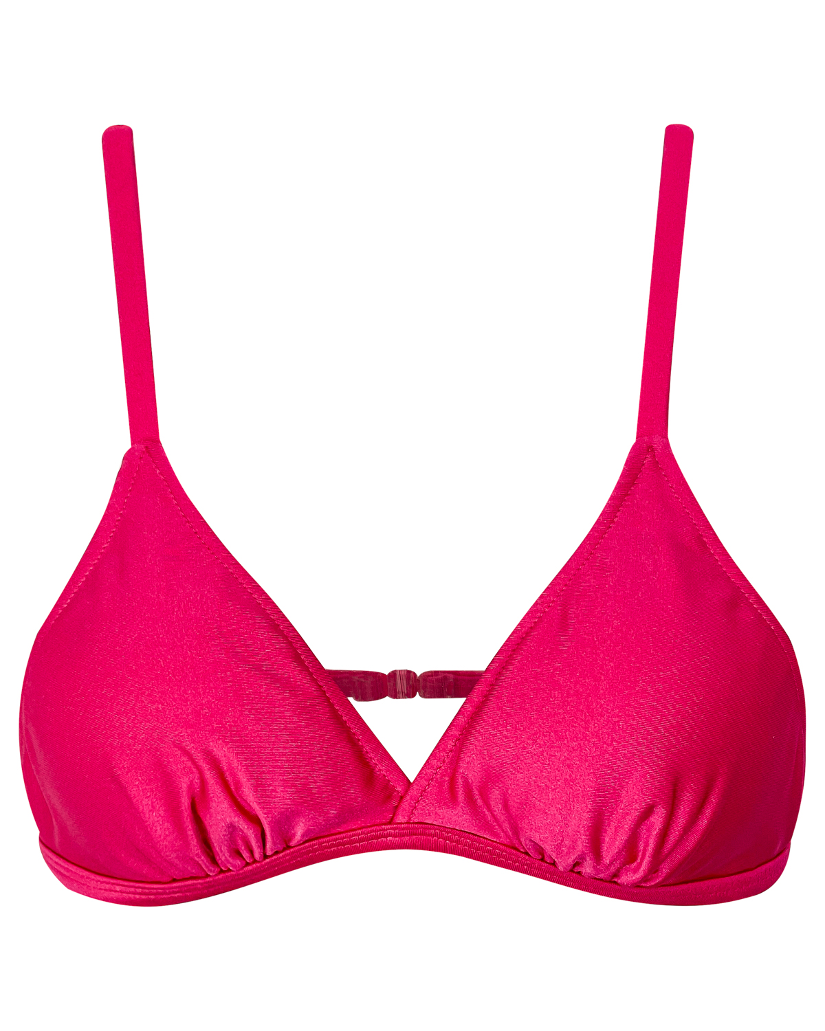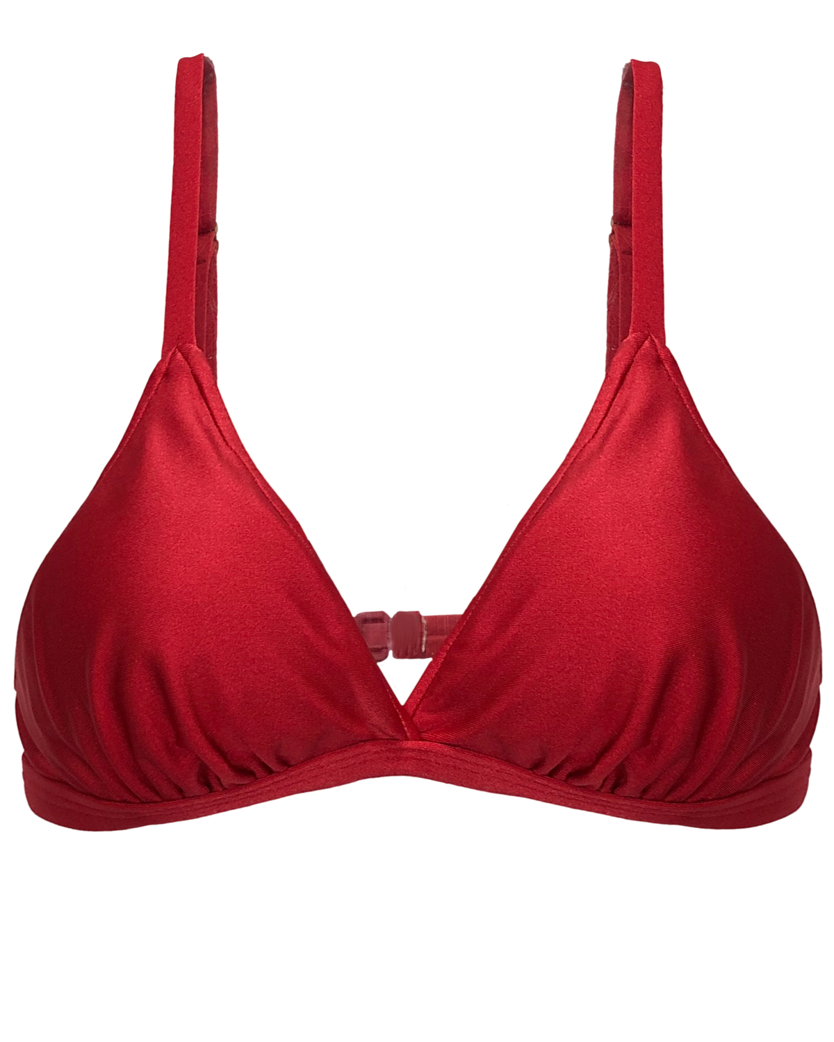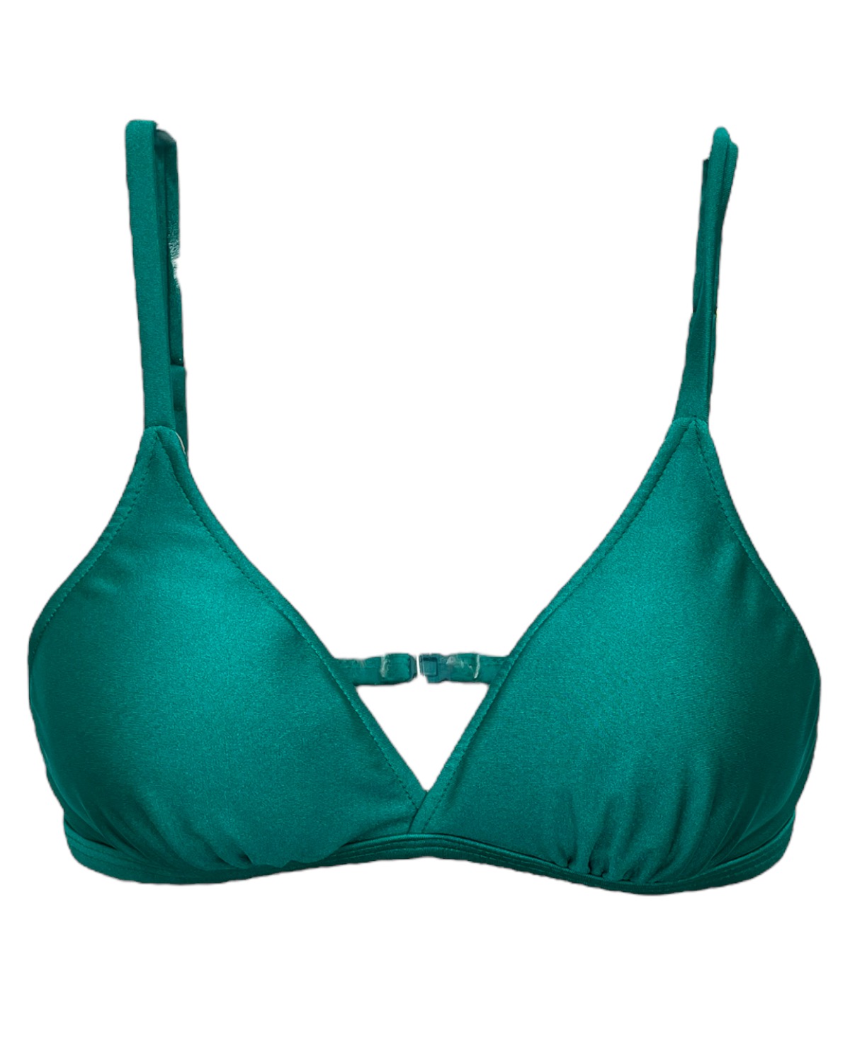 Top de biquíni com bojo removível, levemente transpassado na frente com alças finas, reguláveis e fecho nas costas.