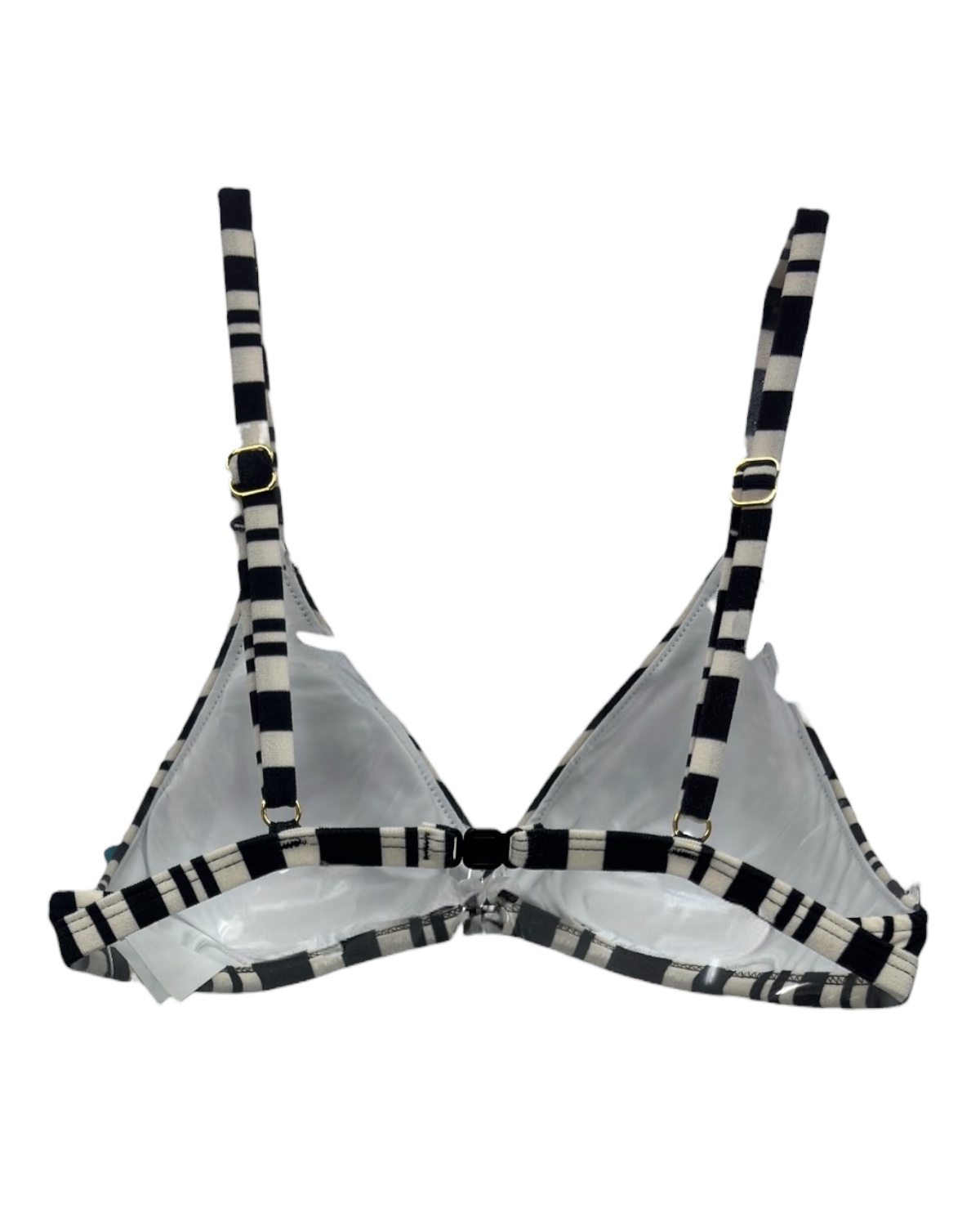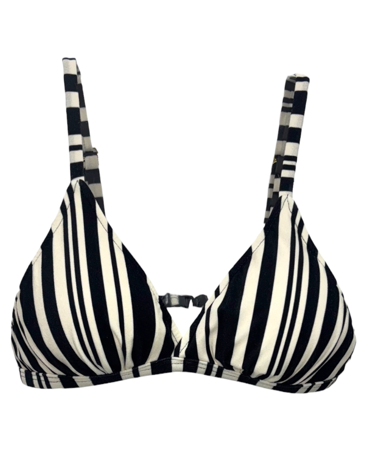 Top de biquíni com bojo removível, levemente transpassado na frente com alças finas, reguláveis e fecho nas costas.