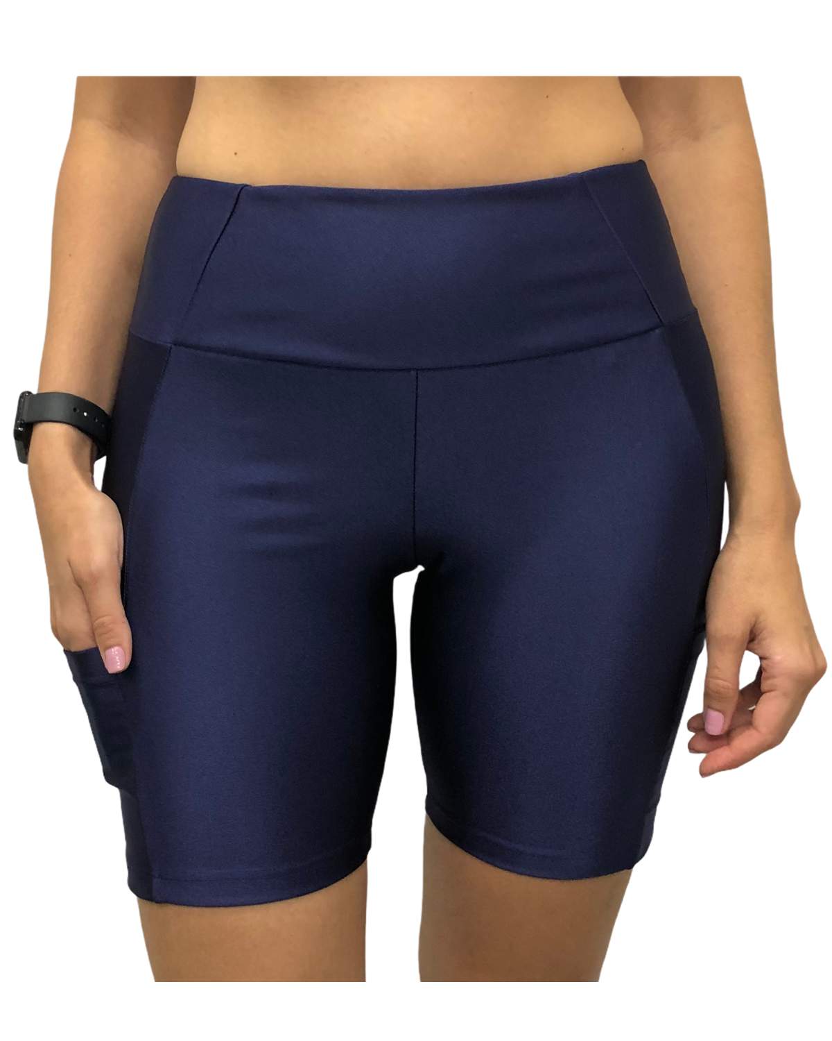 Bermuda Feminina com bolsos auxiliares na lateral. Possui cós largo que ajuda a comprimir e modelar o abdômen. Confeccionada com tecido com um certo brilho de ótima cobertura que favorece peças sem transparência, de alta elasticidade que permite liberdade de movimento e compressão que valoriza o corpo, essa peça é perfeita para o dia a dia, bem como para as suas atividades físicas diárias.