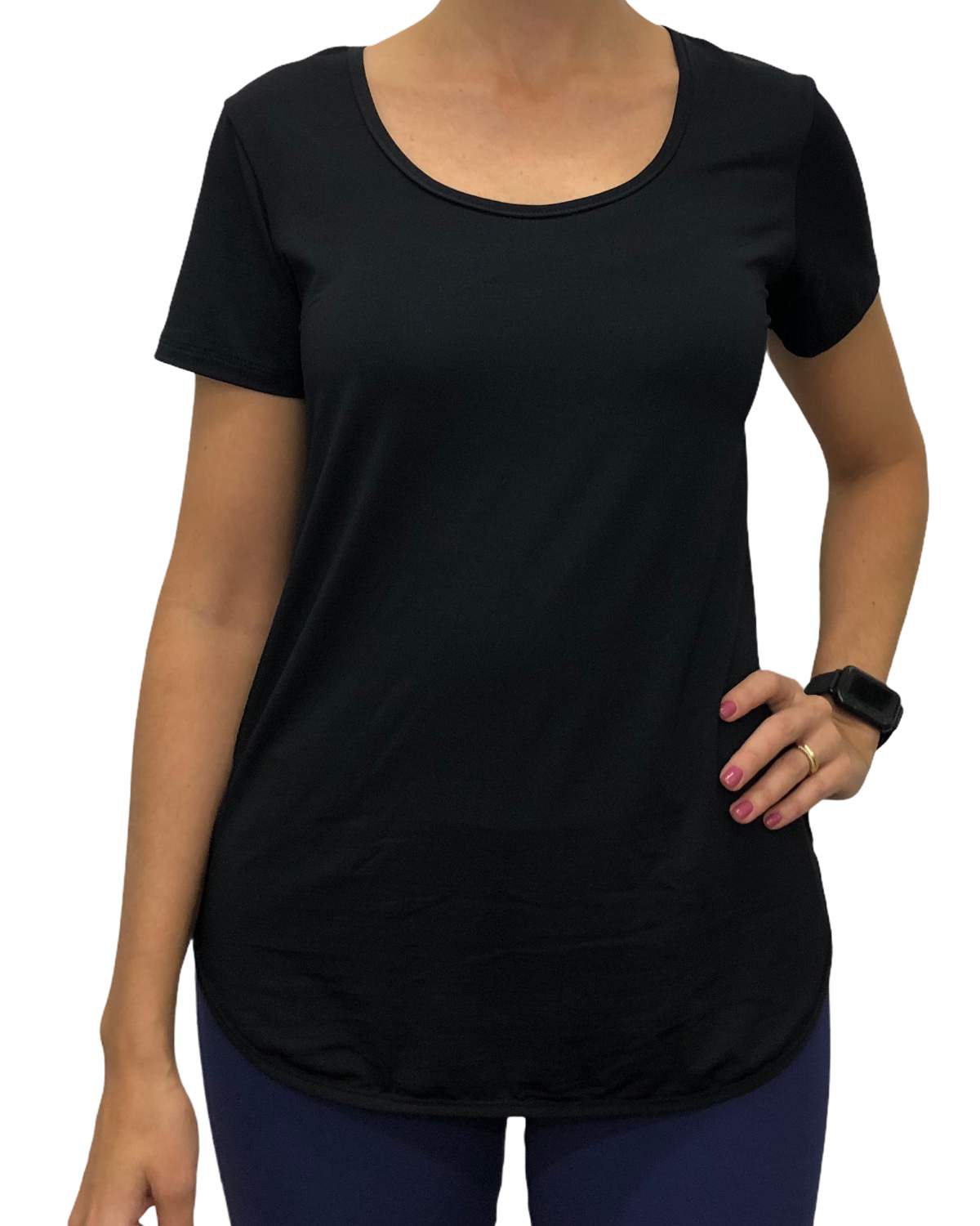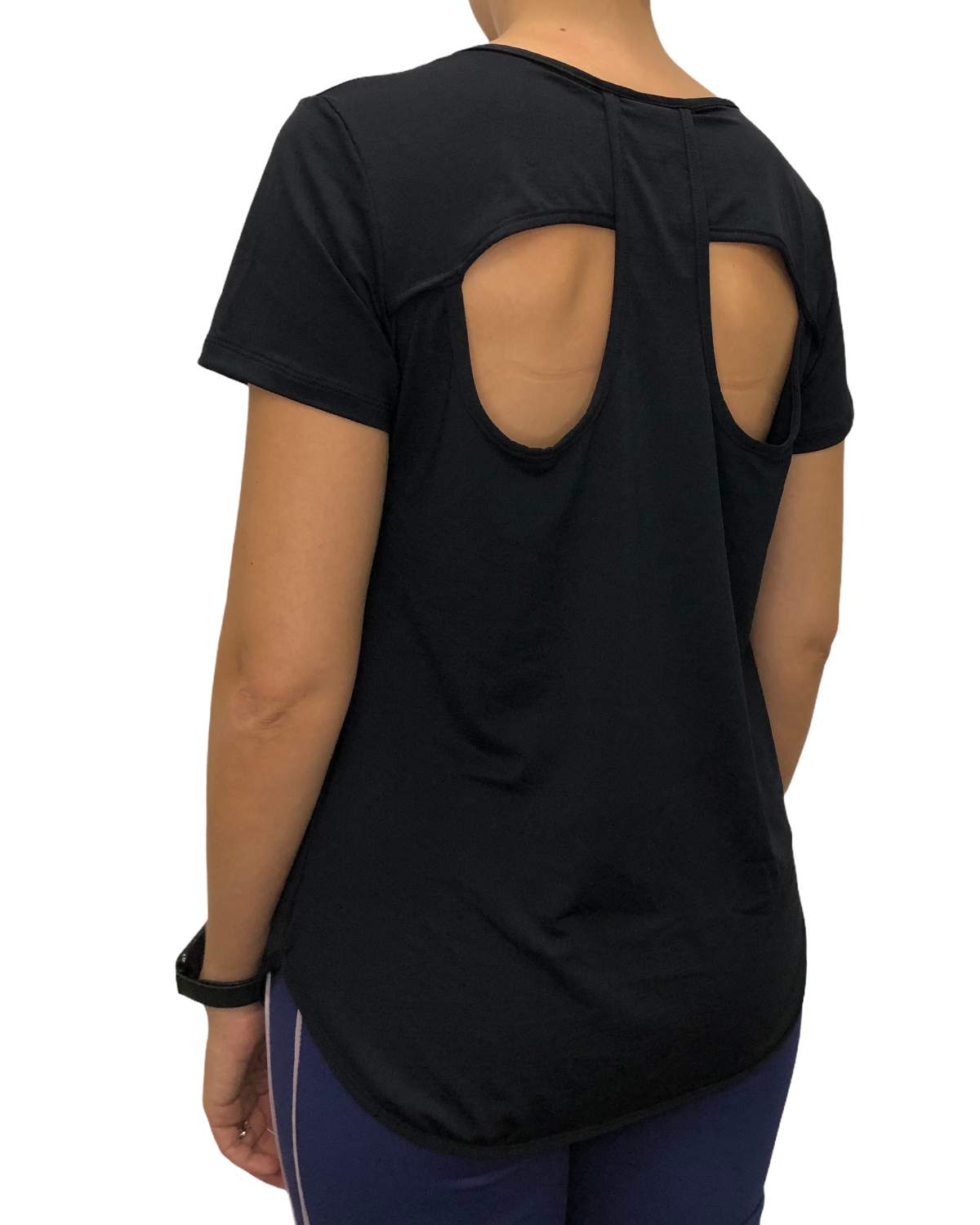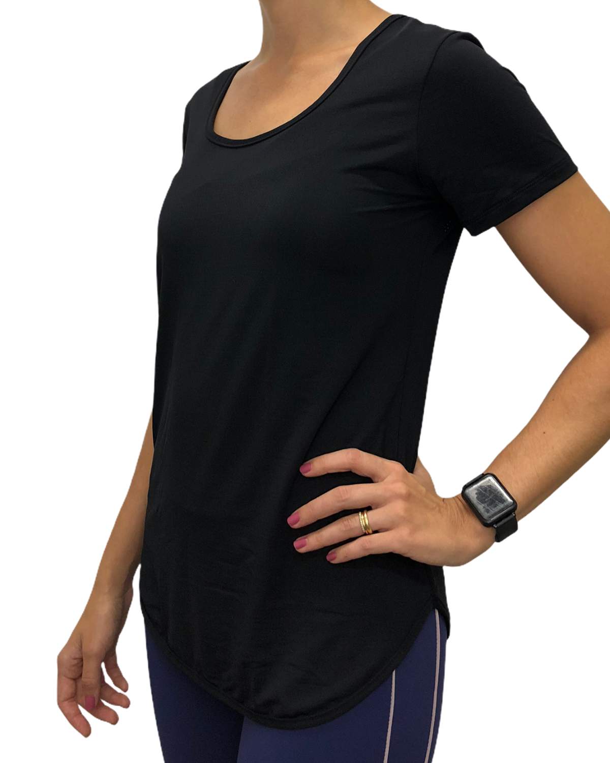 Blusa manga curta com detalhe nas costas. Apresenta decote frontal em U e costas com detalhe em recortes. Comprimento no quadril abaixo do bumbum. Confeccionada com tecido tecnológico de secagem rápida e com fator de proteção solar.