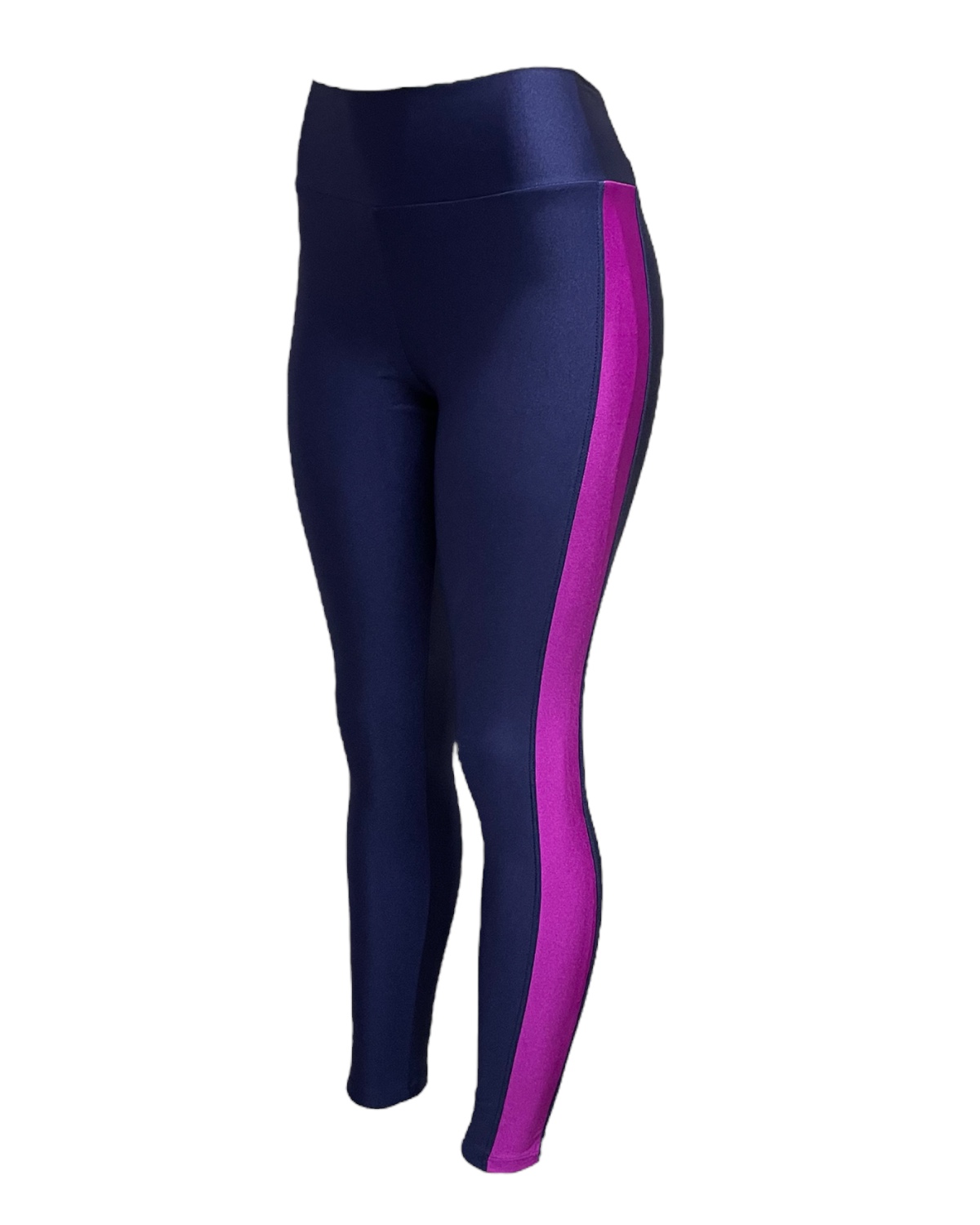 Calça Fitness Legging com faixa lateral e bolso trilobal Marinho