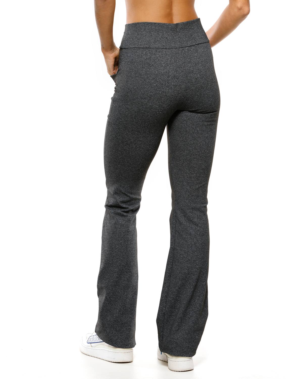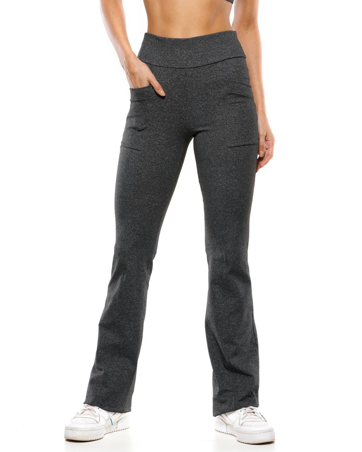 Calça Feminina modelo Bailarina com cós anatômico e bolsos, destacando-se pelo detalhe na costura frontal.