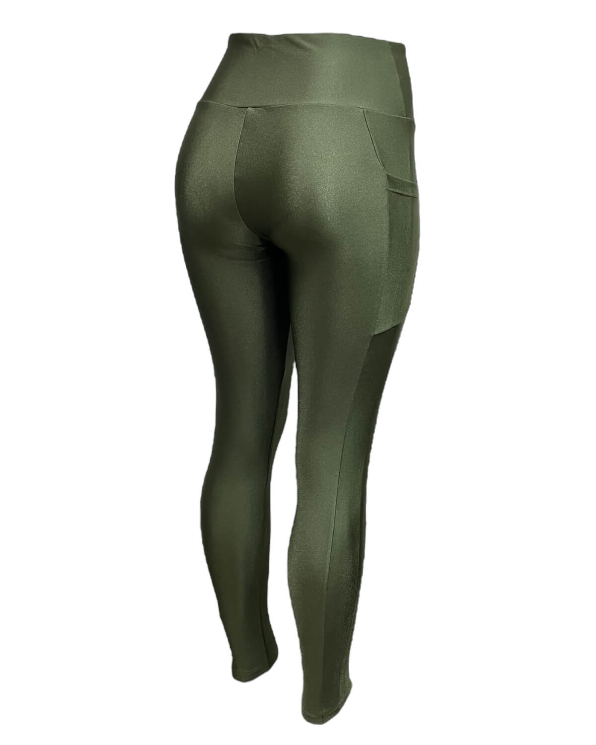 Calça Legging Feminina com bolso auxiliar na lateral. Possui cós largo que ajuda a comprimir e modelar o abdômen.