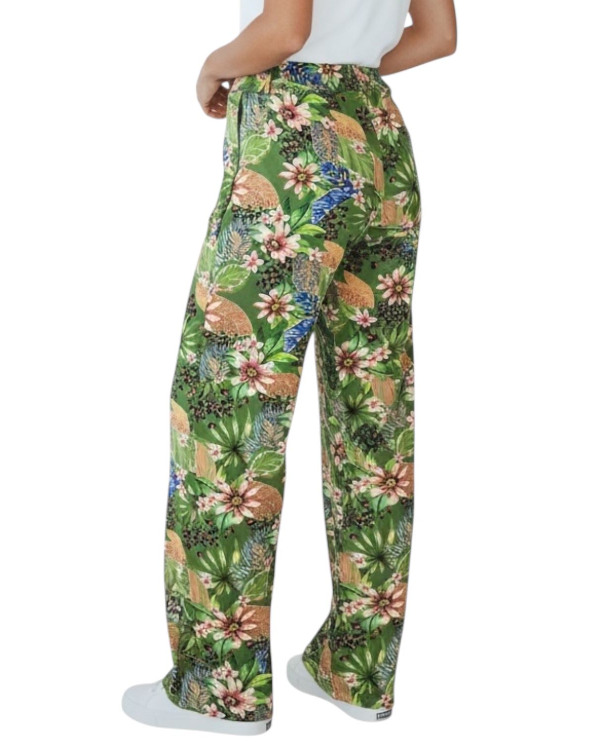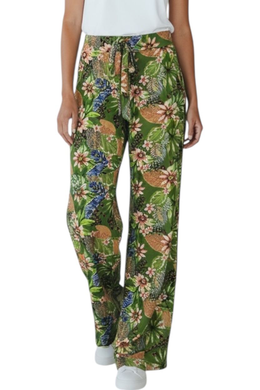 Calça pantalona com amarração na cintura. Modelagem solta e reta com caimento perfeito.