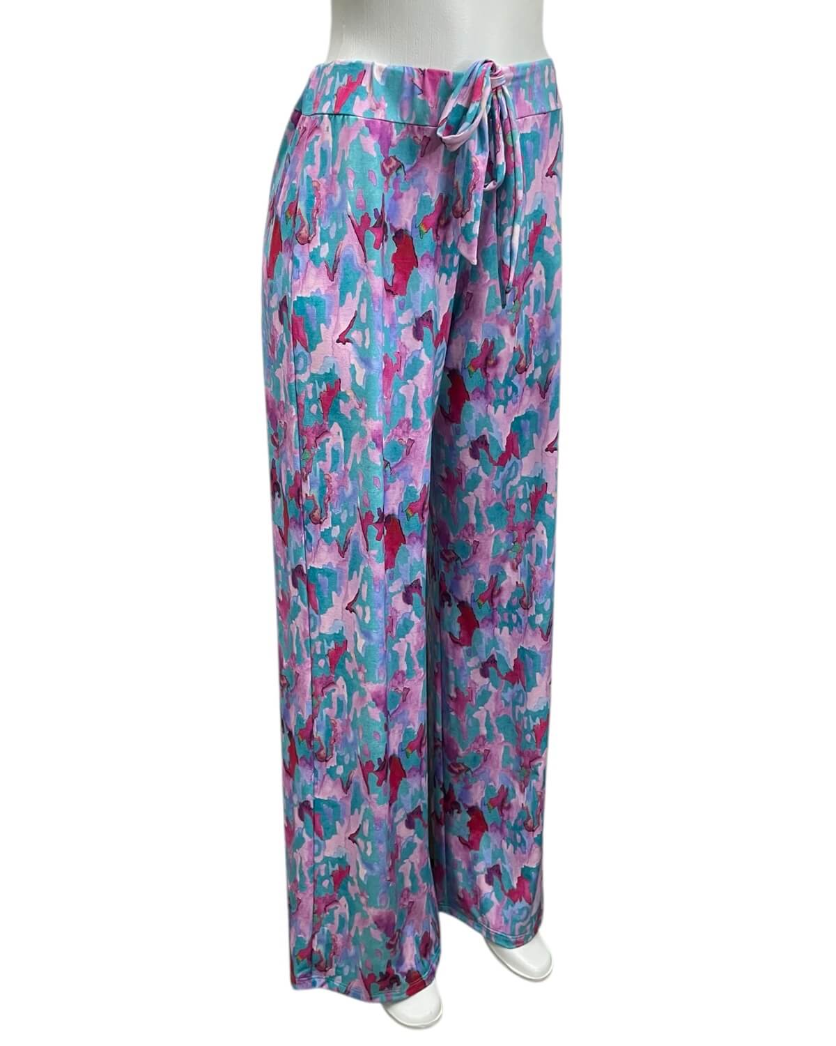 Calça pantalona com amarração na cintura. Modelagem solta e reta com caimento perfeito.