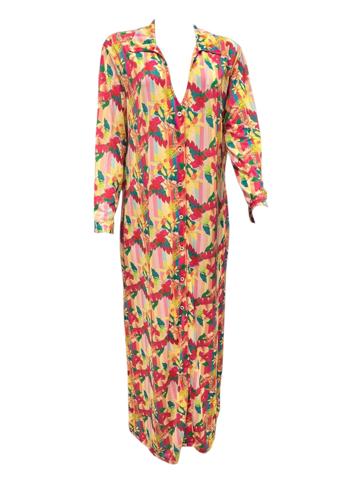 Camisão Longo com Gola Vitamina, a peça que une conforto e estilo vibrante para transformar seu guarda-roupa. Com estampa exclusiva em cores intensas – amarelo, vermelho, verde e tons pastel – esse camisão é perfeito para quem busca um visual alegre e cheio de personalidade. Seu design longo e a gola clássica proporcionam uma silhueta elegante, ideal para ocasiões casuais e sofisticadas.